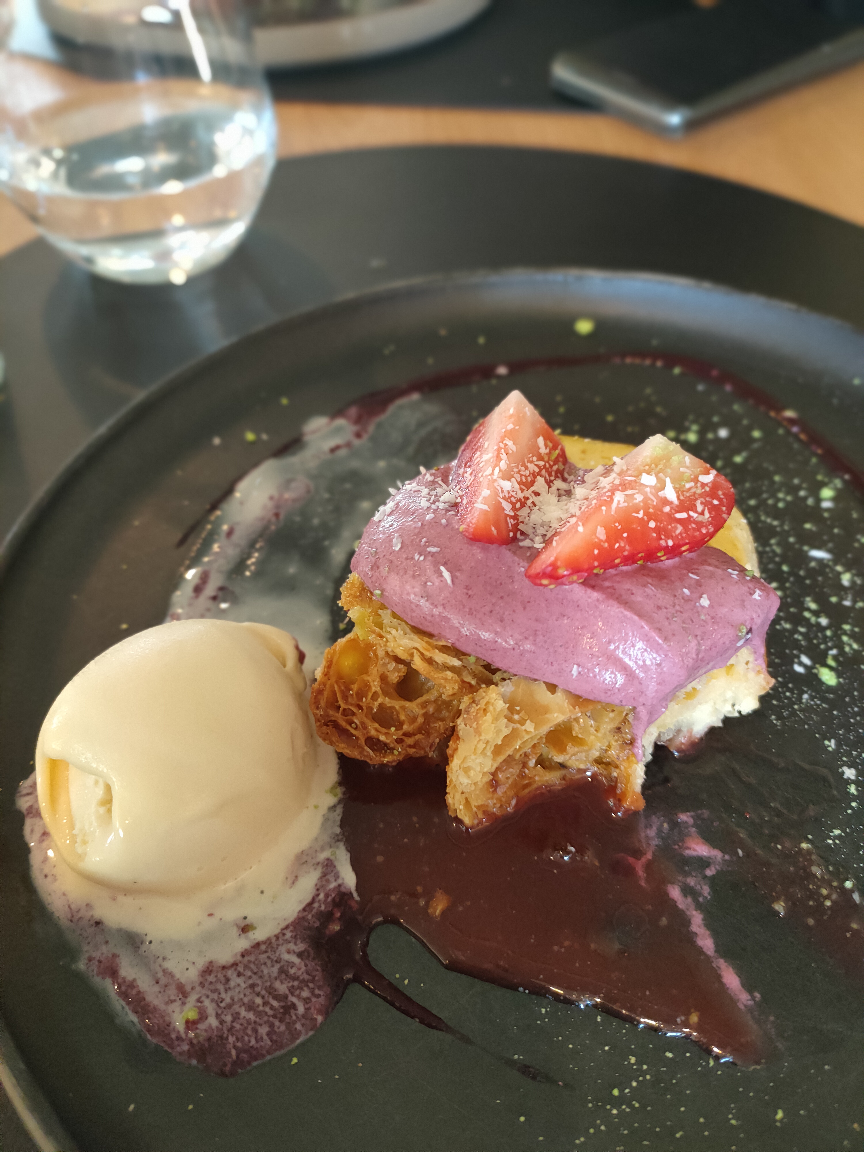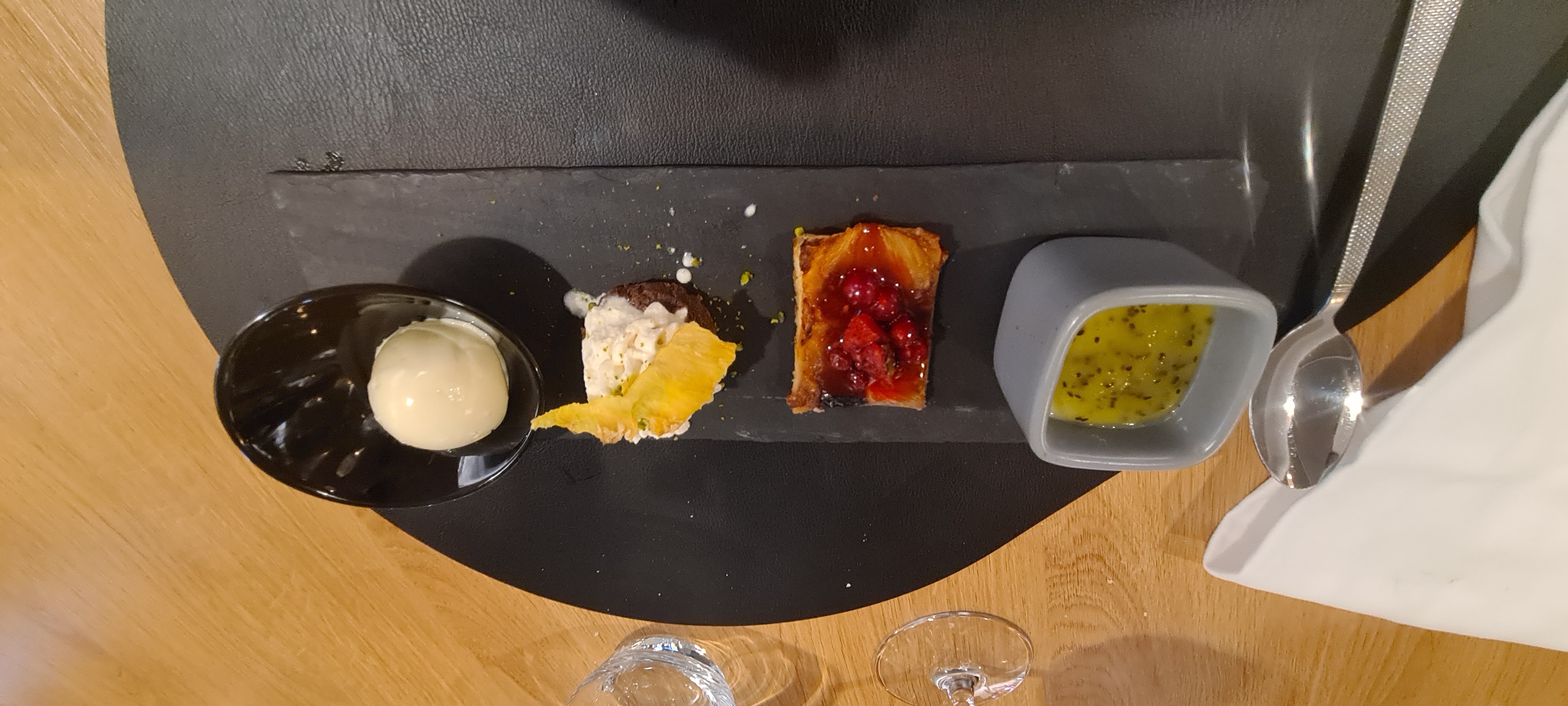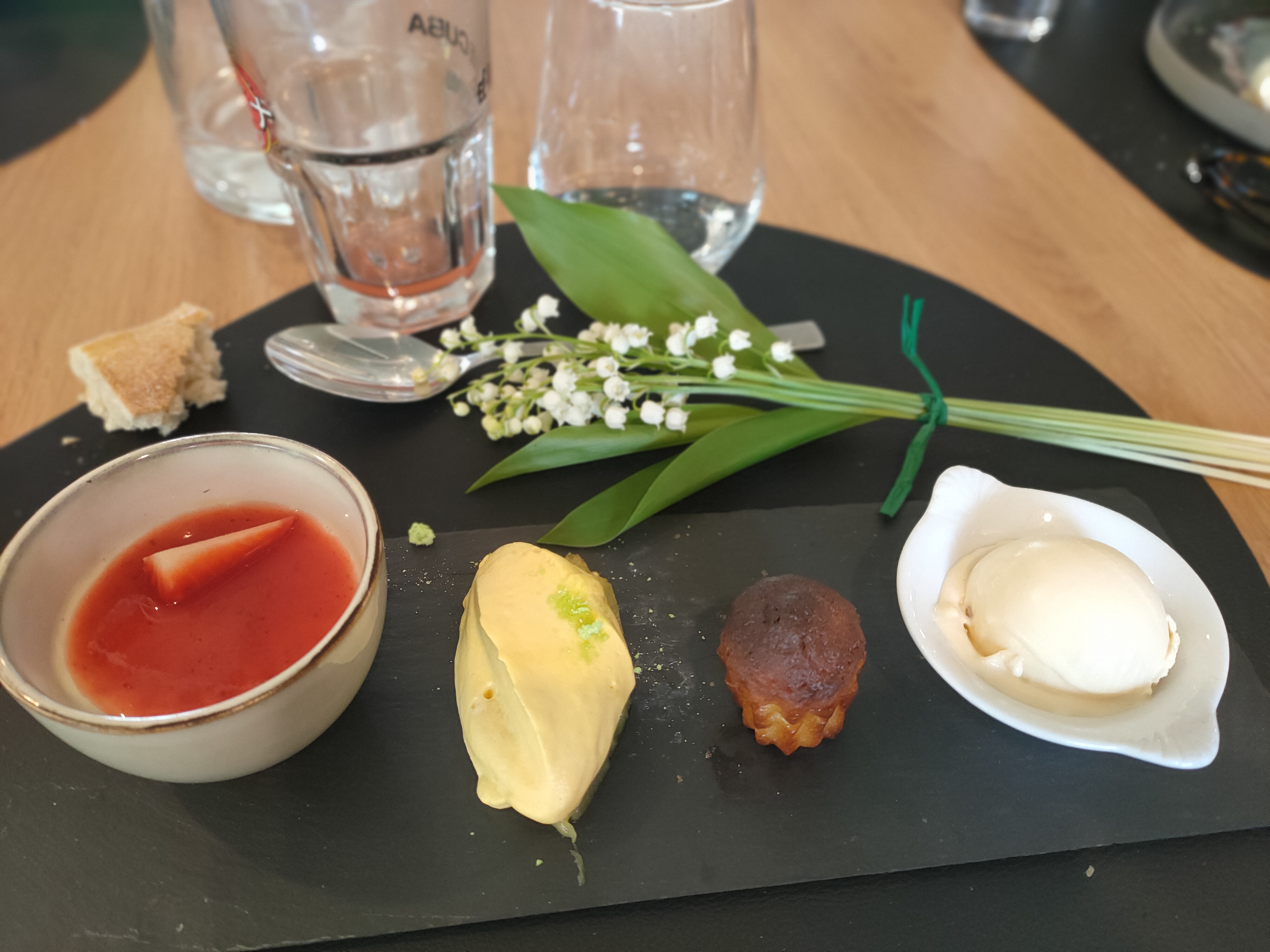 Cadre magnifique, personnel sympathique, qualité des produits extra, très jolie présentation des assiettes . Une quantité un peu plus généreuse permettrait de justifier le prix, mon dessert gourmand n'était pas trop gourmand (délicieux quand même :) ) Je recommande