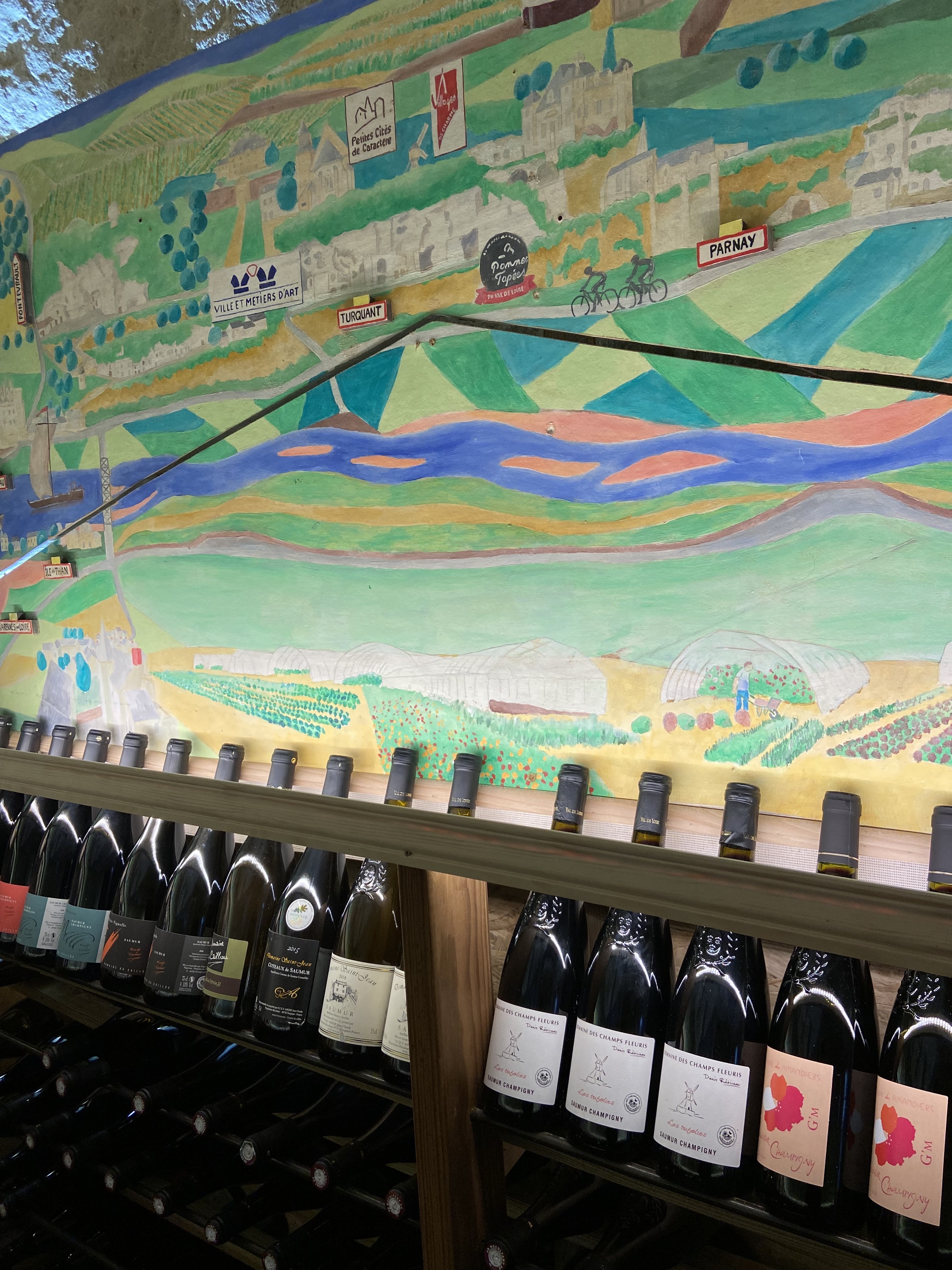 Excellent concept : proposer uniquement des produits locaux, déco de la cave troglo sympa (fresque de la Loire avec tous les vins de loire), exposition de tableaux. Accueil aux petits soins. A visiter vivement.