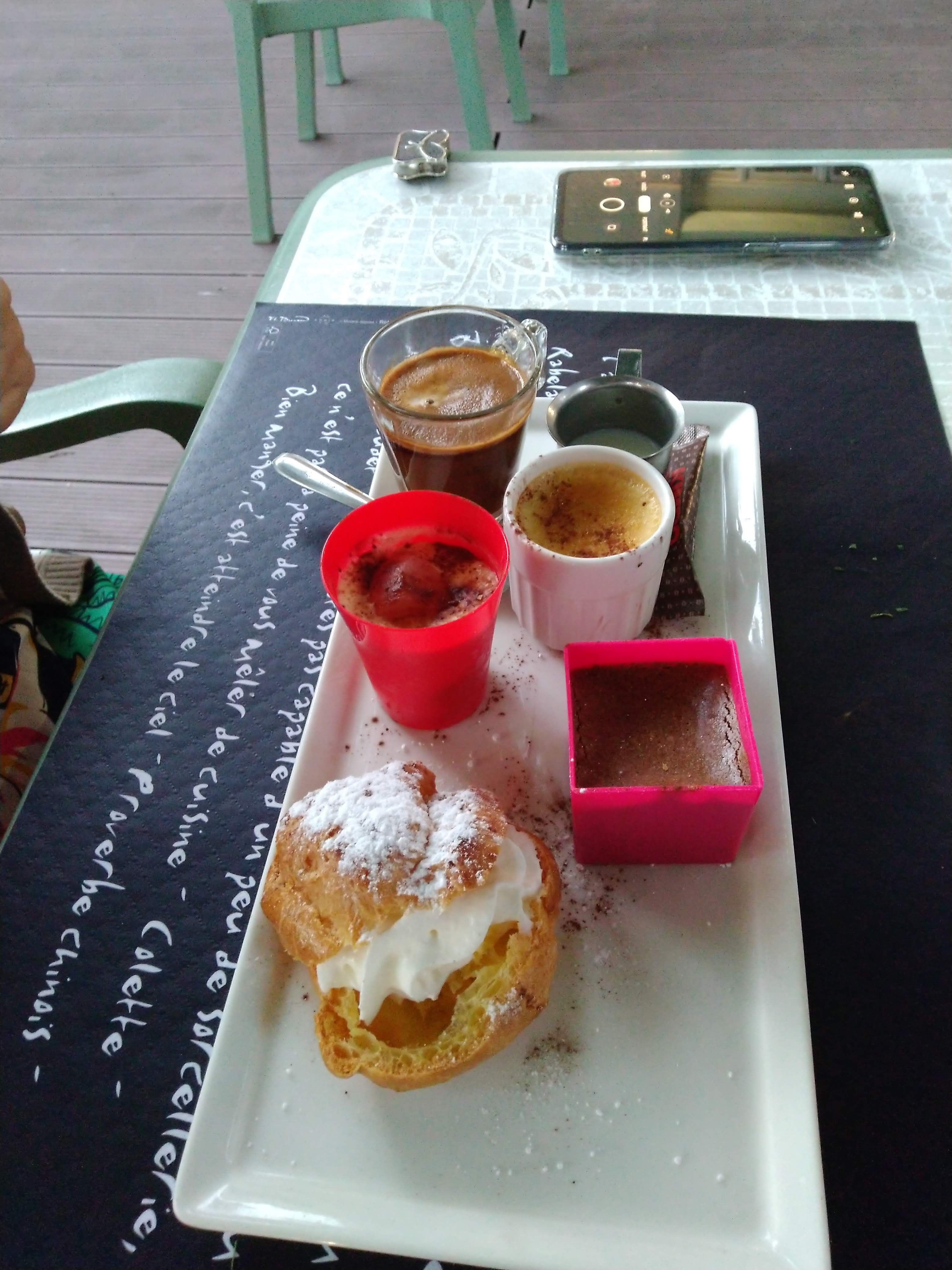 Très bon accueil. Cuisine simple et délicieuse. Le café gourmand est servi avec des desserts maison. Très bon moment sur la terrasse ombragée