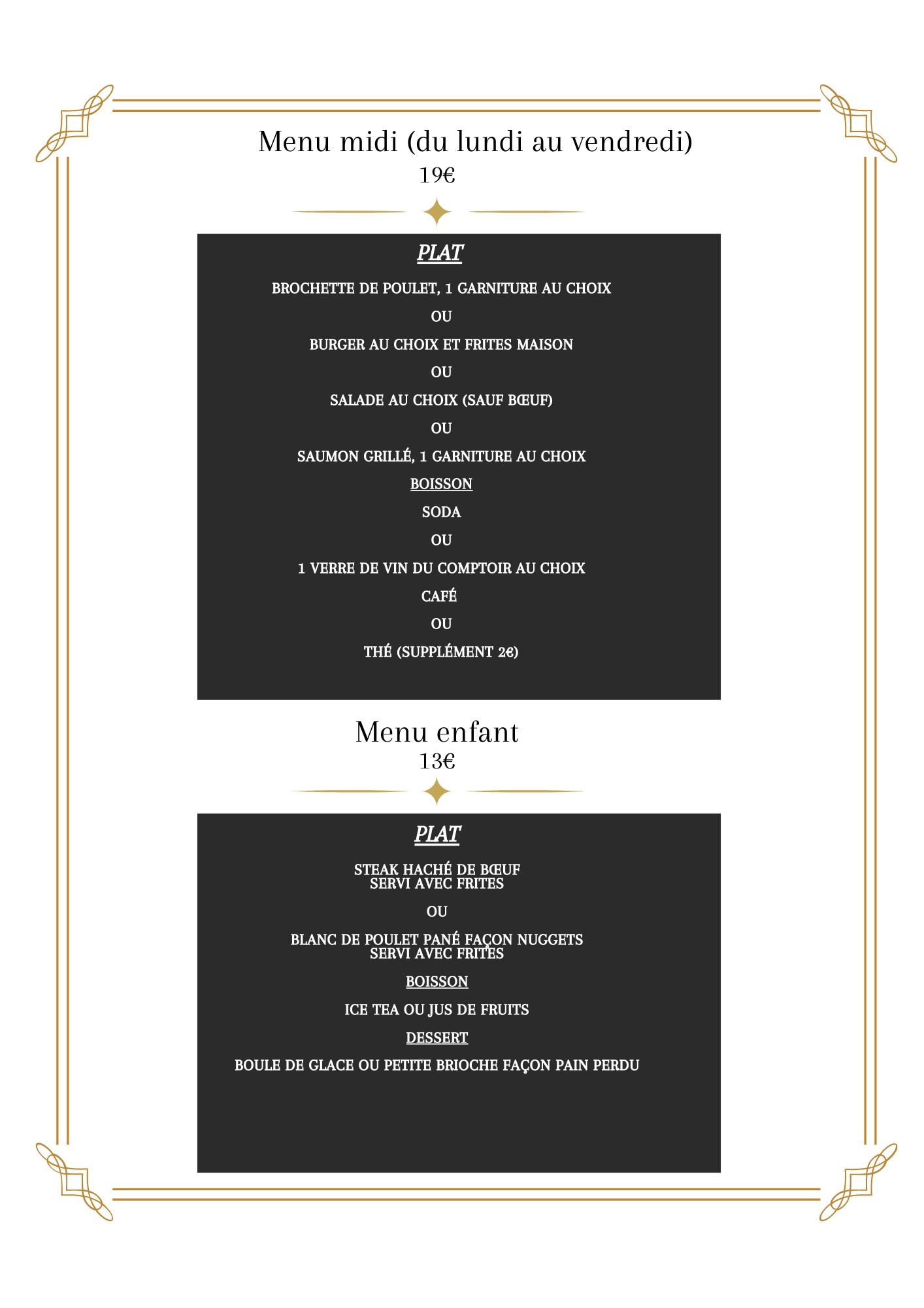 Nos prix affichés sur la carte sont les mêmes que sur votre addition … nous ne sommes pas des voleurs!! Loin de la!!
