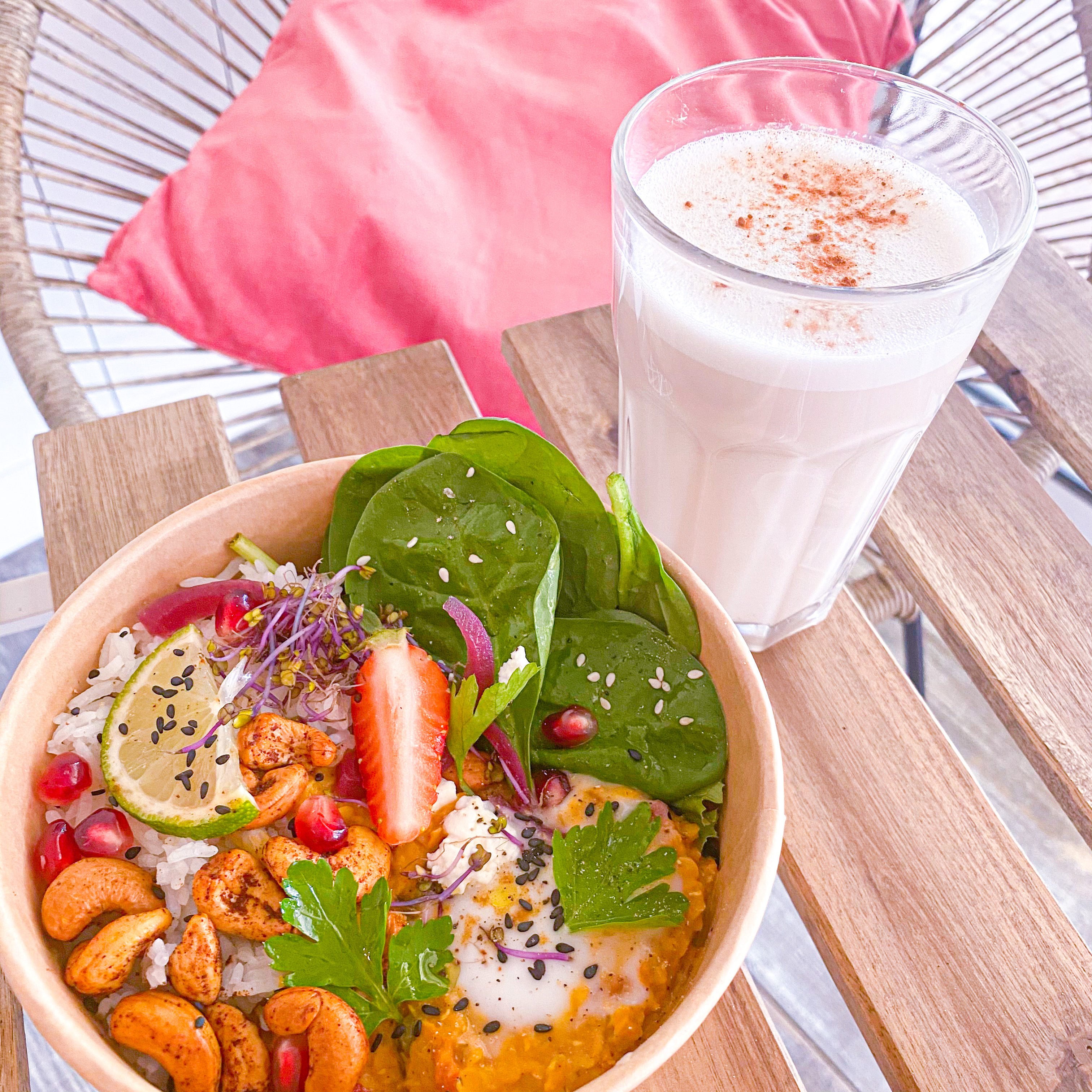 Un endroit idéal pour prendre le petit-déjeuner avec des produits frais et « healthy ». La décoration nous immerge davantage dans nos vacances. Seul petit bémol, c’est que je trouvais les portions peut être légèrement petites par rapport à d’autres cafés où je prends des bowls similaires.
