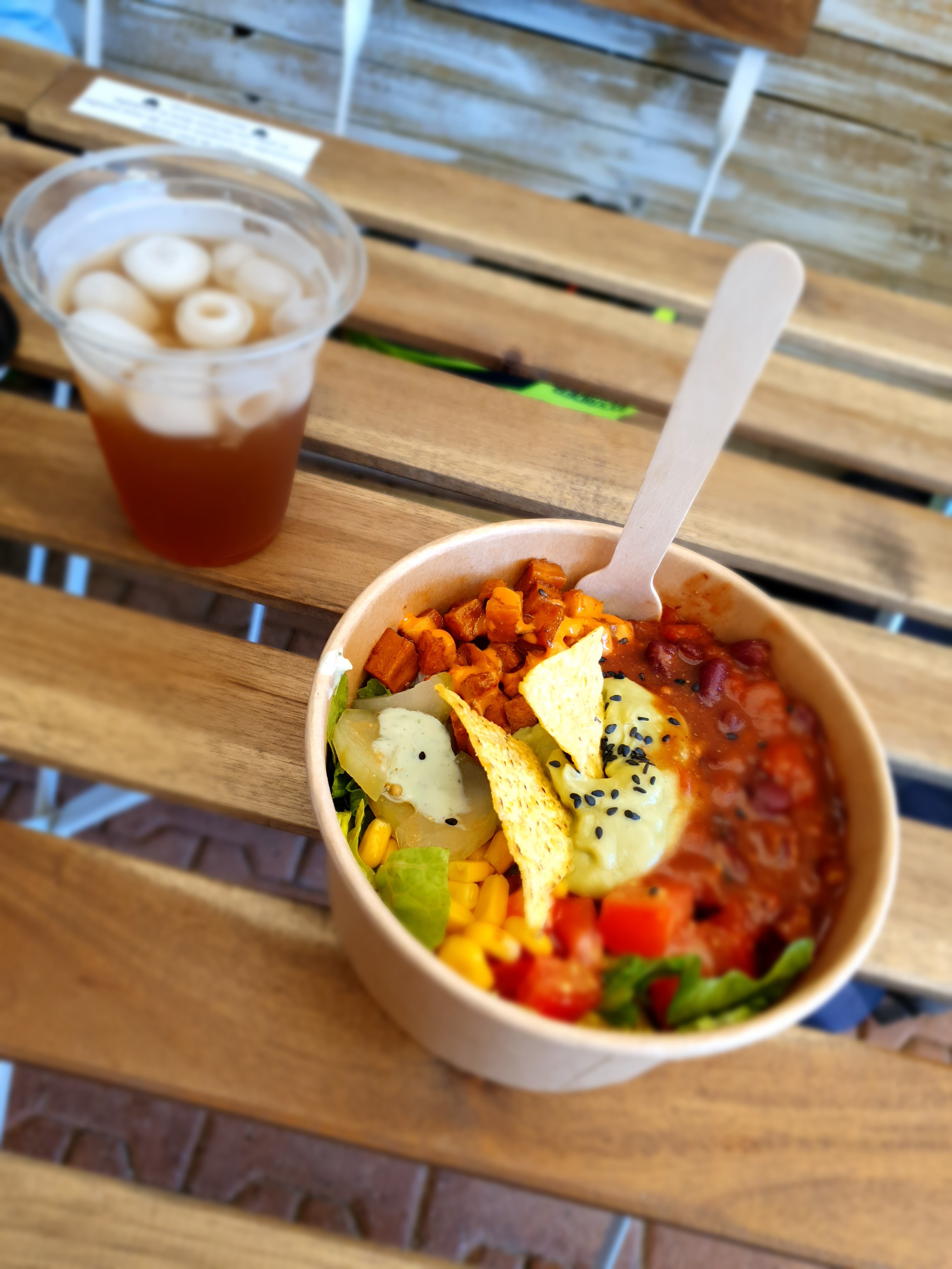 Je ne sais même pas par où commencer : Ils sont juste merveilleux ! Ils ont fait le choix de nous offrir le meilleur Le meilleur pour notre bouche : coloré et tellement savoureux ! Même les amateurs de viande vont adorer ! Pour notre santé : tout est fait maison, sain, avec des options vegan et sans gluten, et vraiment bien équilibré. ET pour notre planète ! Ils utilisent des emballages écologiques, pas de plastique du tout ! ! Et le personnel. OMG tellement adorable, c'est écrit bonnes vibrations uniquement dans le restaurant. Et c'est tellement vrai, ça se sent ! Merci à tous les gars et à bientôt !