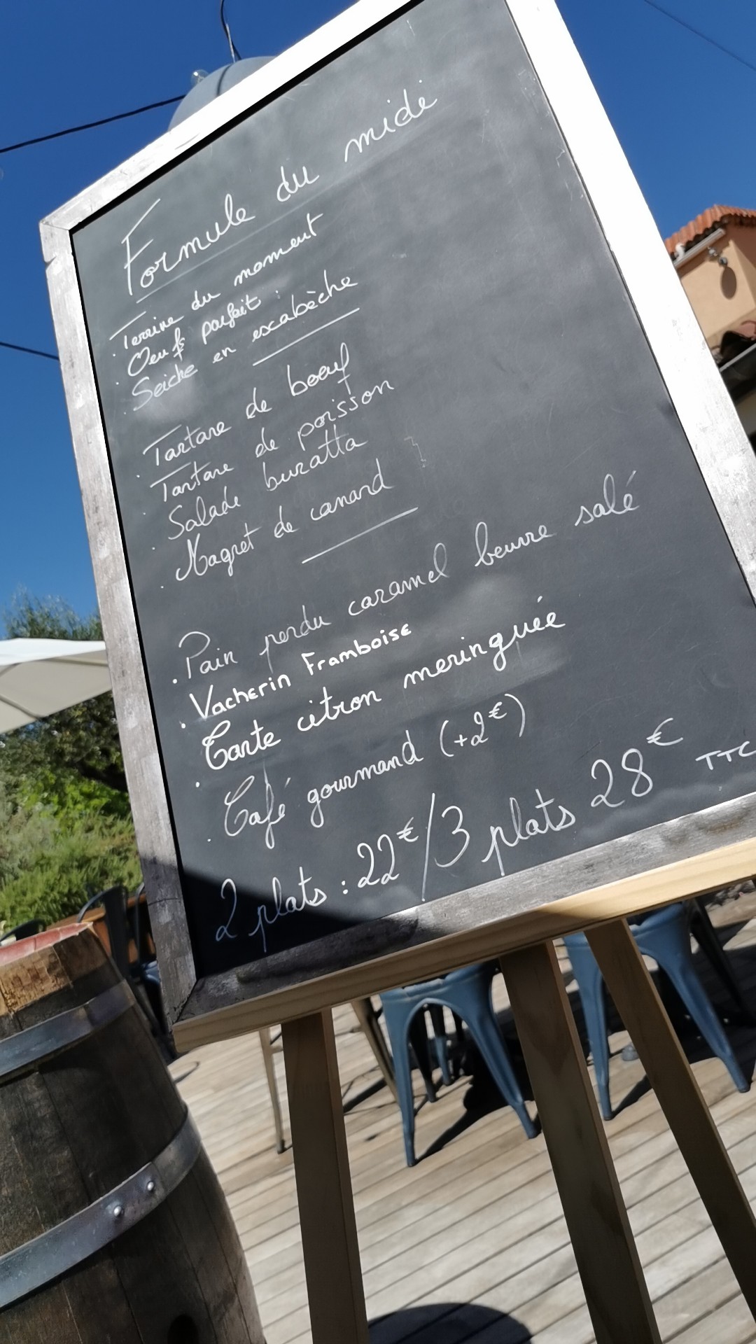Produits frais et bon rapport qualité prix. Cuisine de saison. Seul petit bémol, il fait un peu trop chaud sous les parasols de la terrasse.