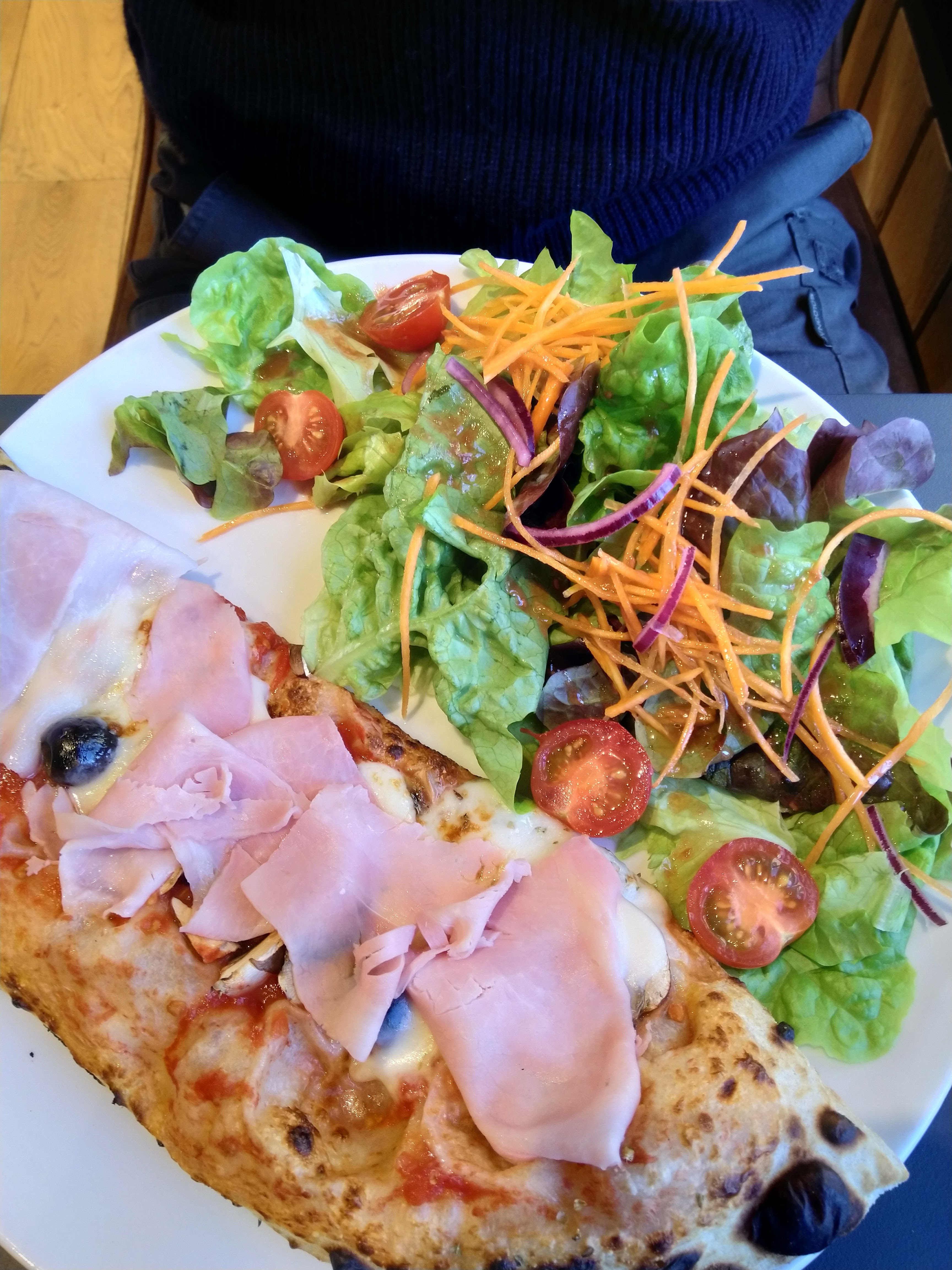 Ambiance très agréable 😊 Cuisine top 👌 Service irréprochable 👍 Établissement que je recommande vivement ! L'idée de la 1/2 pizzas + salade composée = 👍😋 Pour le dessert, le café gourmand, à déguster absolument !