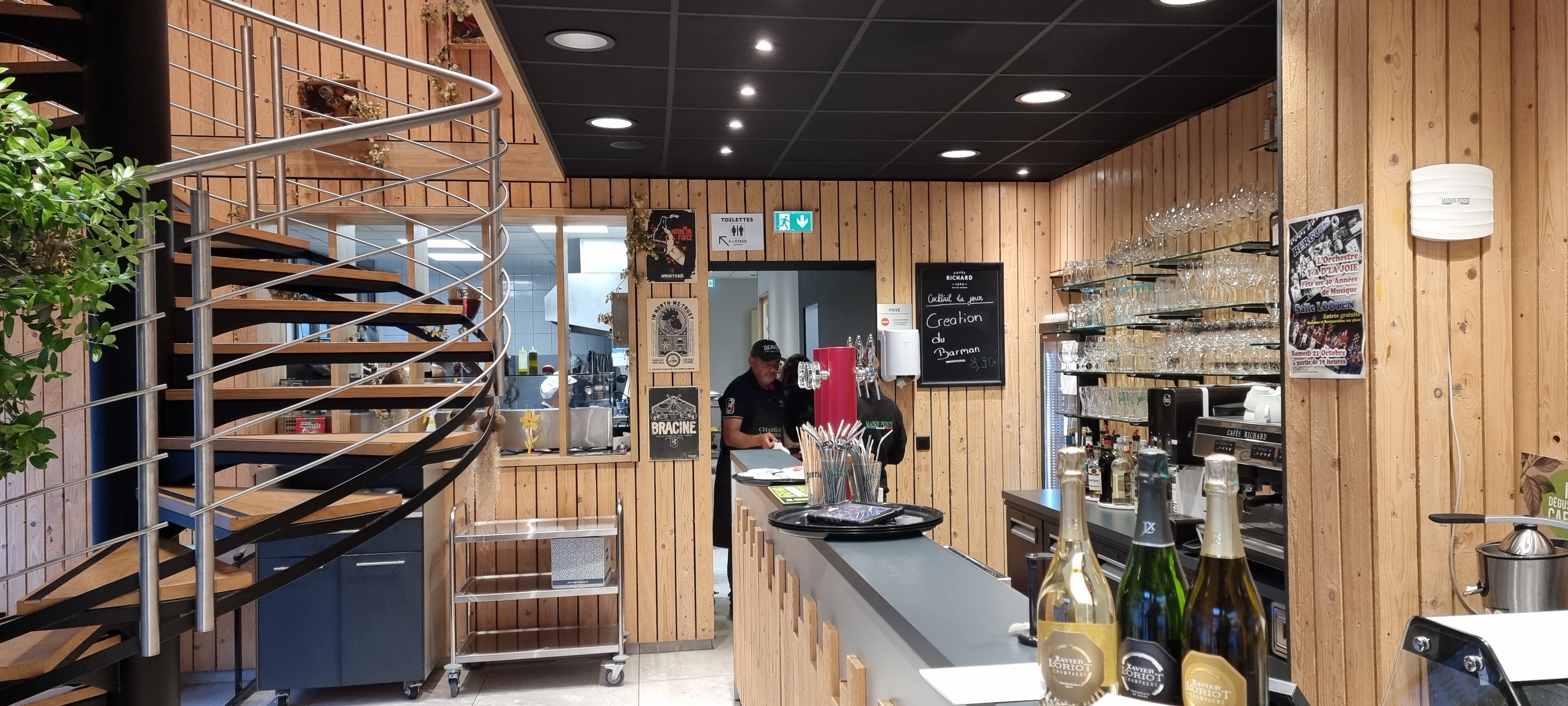Établissement très bien tenu . Nous avons déjeuné au premier étage la déco est très belle. Le personnel est au petit soin avec les clients. La cuisine est au top aussi bien pour la boisson que pour les plats. Nous vous recommandons les pizzas et les salades. Le + la cuisine faite avec les légumes frais,vendus dans l'établissement.