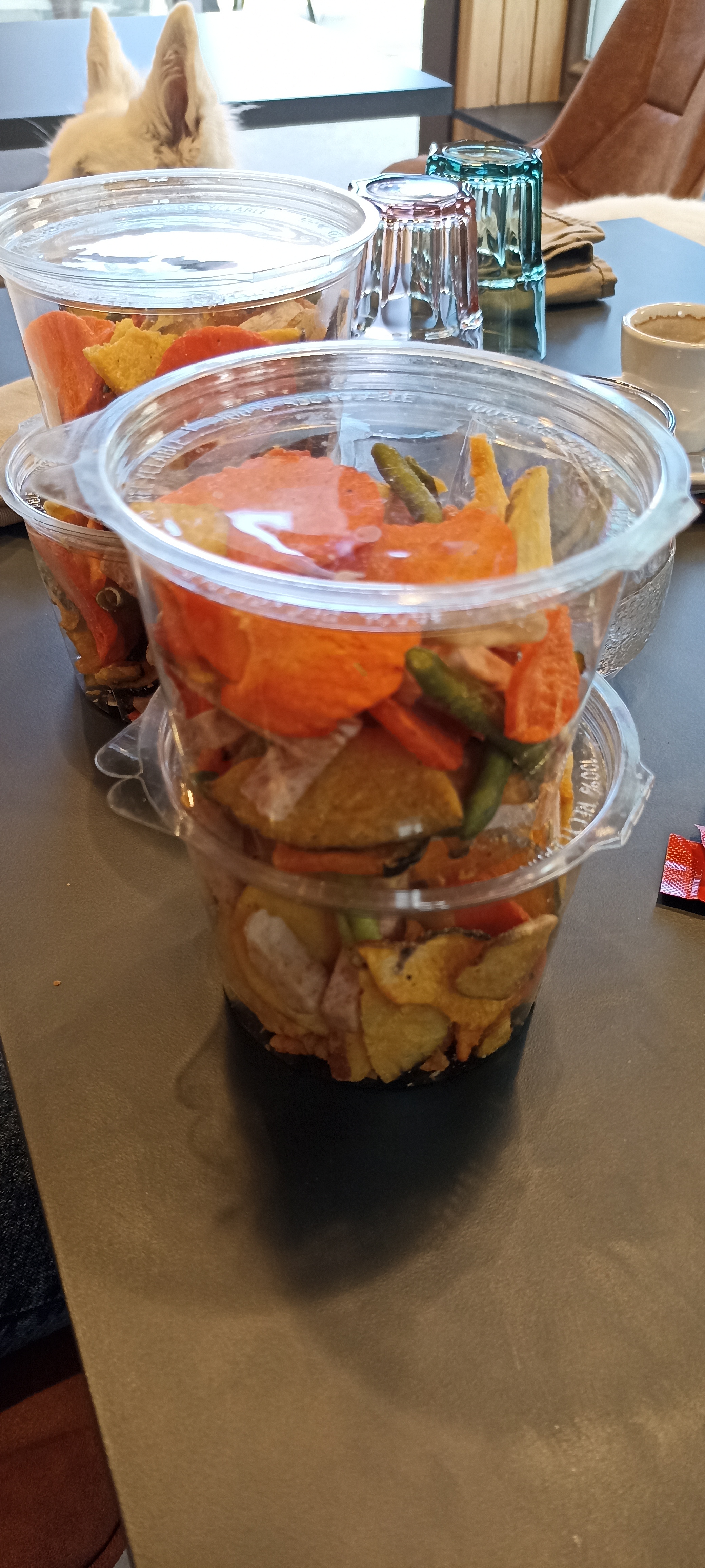 Bon accueil, salades très copieuses...😀 Et merci d avoir accepté mon chien pour déjeuner ..🐶😀