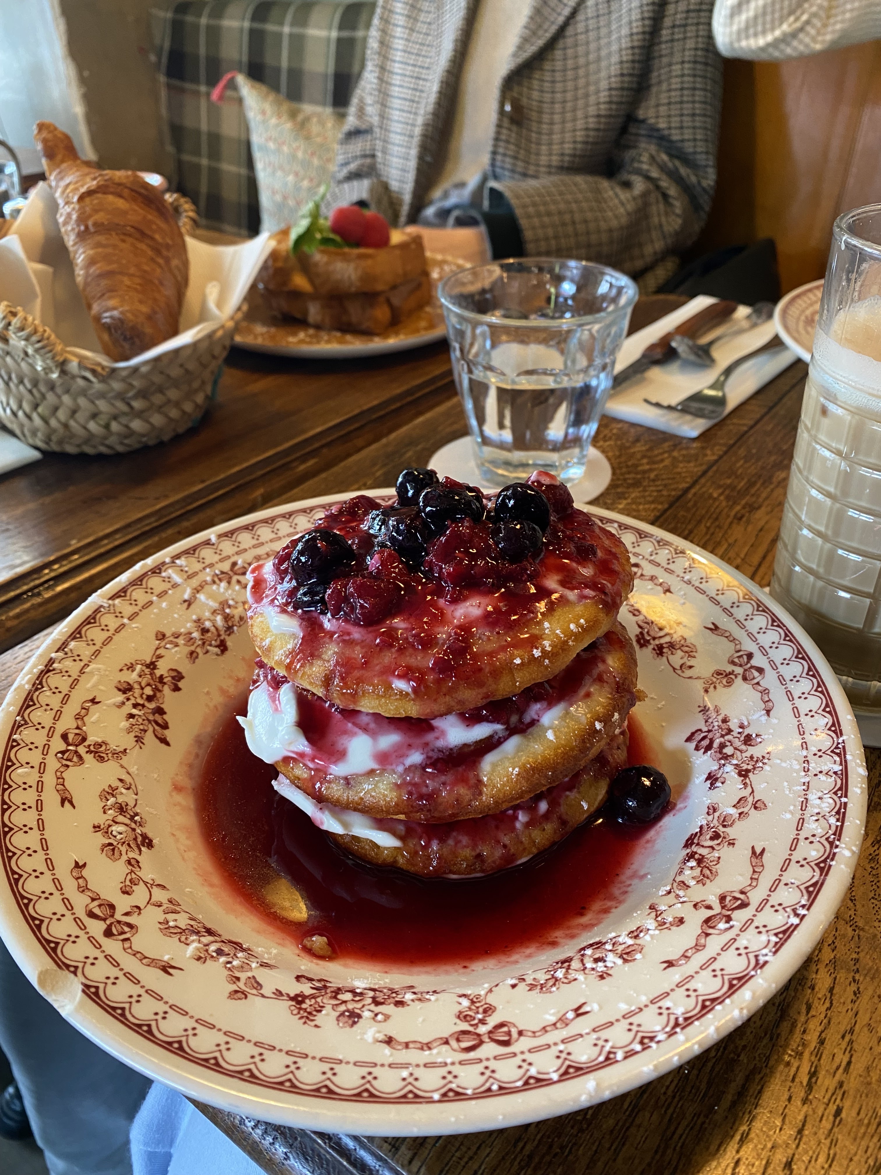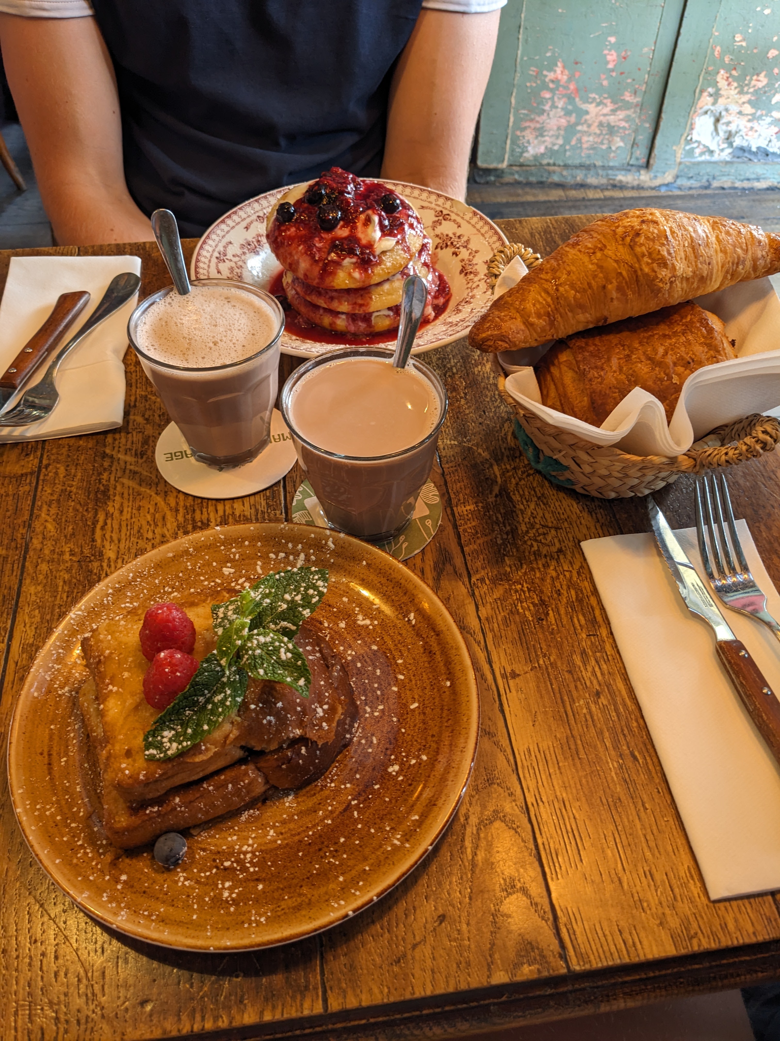 Pancakes bons mais pas extraordinaires. Joli cadre. Service rapide serveurs sympa. Table trop petite. Café et croissant pas terribles.