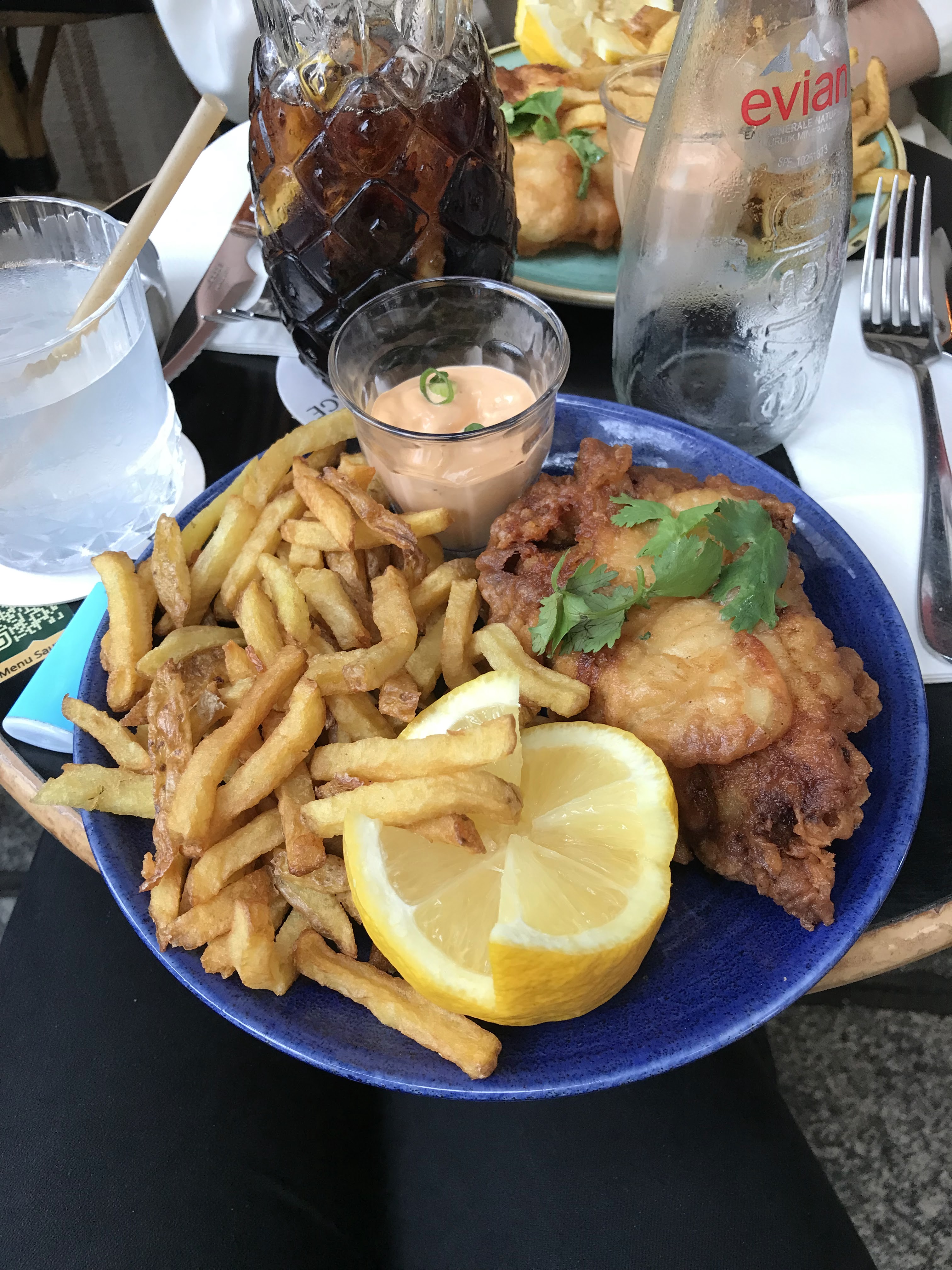Nous avons pris des fish and chips qui était délicieux, le service rapide et sympathique ! Le petit bémol est que les tables sont légèrement trop petite