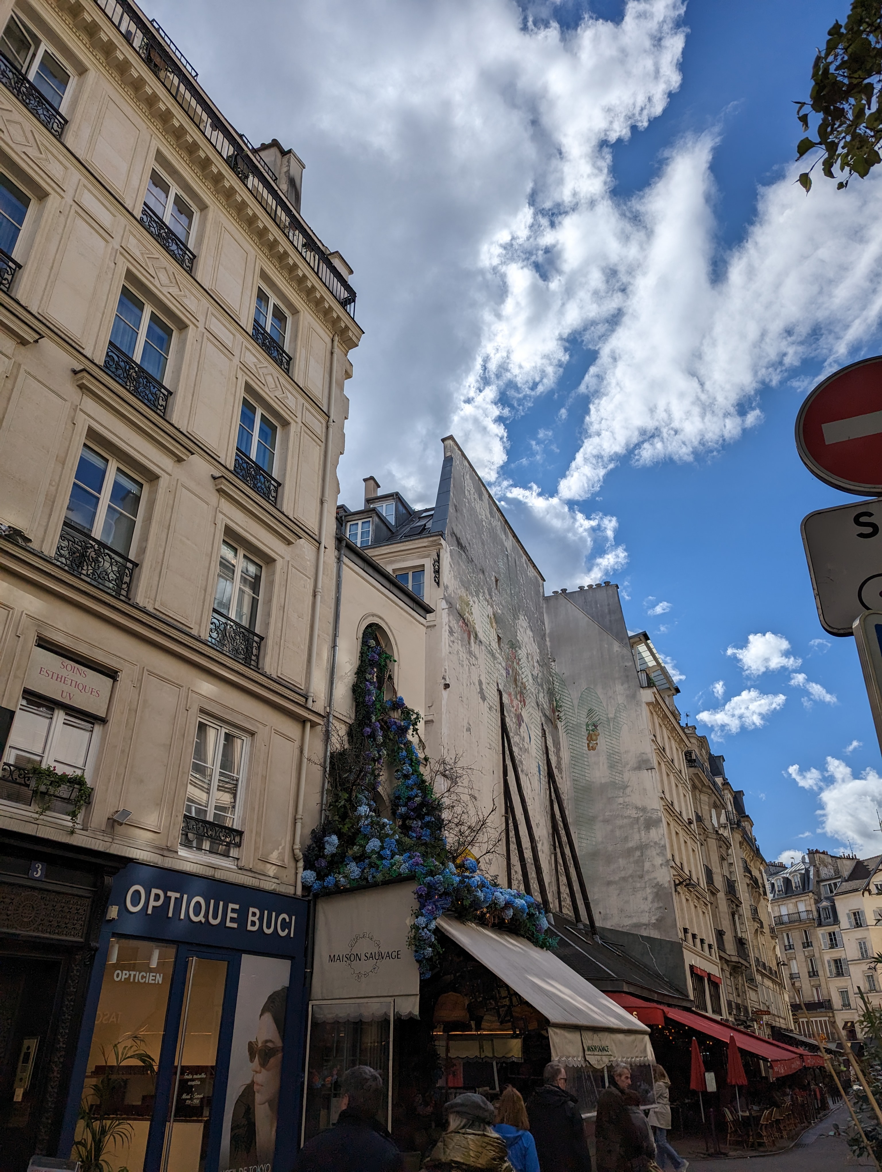 Lieu vraiment joli avec ces fleurs sauvages. Idéal pour un ptit brunch ou pour un petit café. Il faut souvent attendre pour avoir une table car la terrasse est toujours bondée.