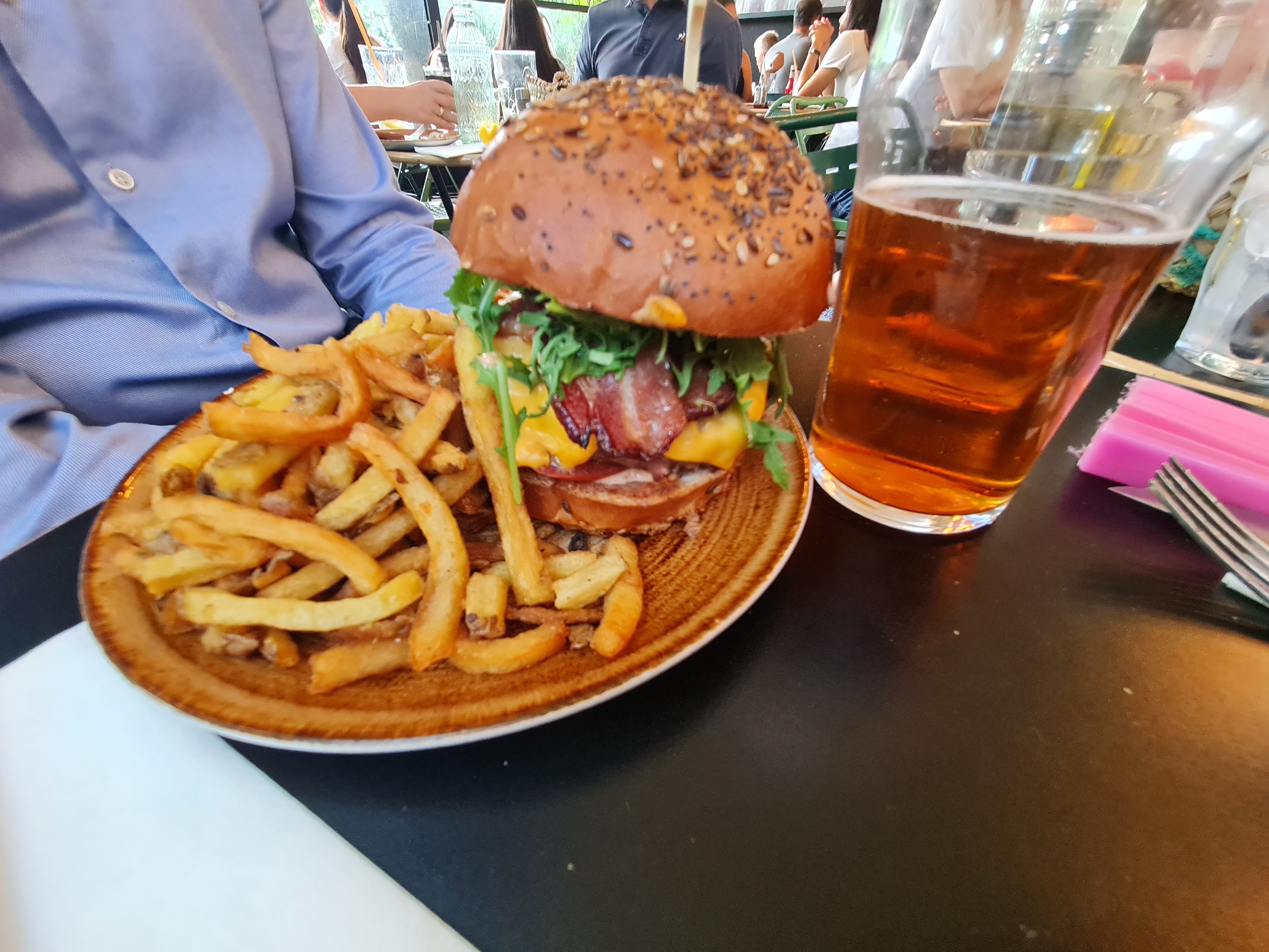 Je trouve que la terrasse est sale et mal rangé, cependant la serveuse était très bien. Concernant la cuisine c'était pas mal mais les frites à la truffe n'avait pas le goût de truffe contrairement à avant