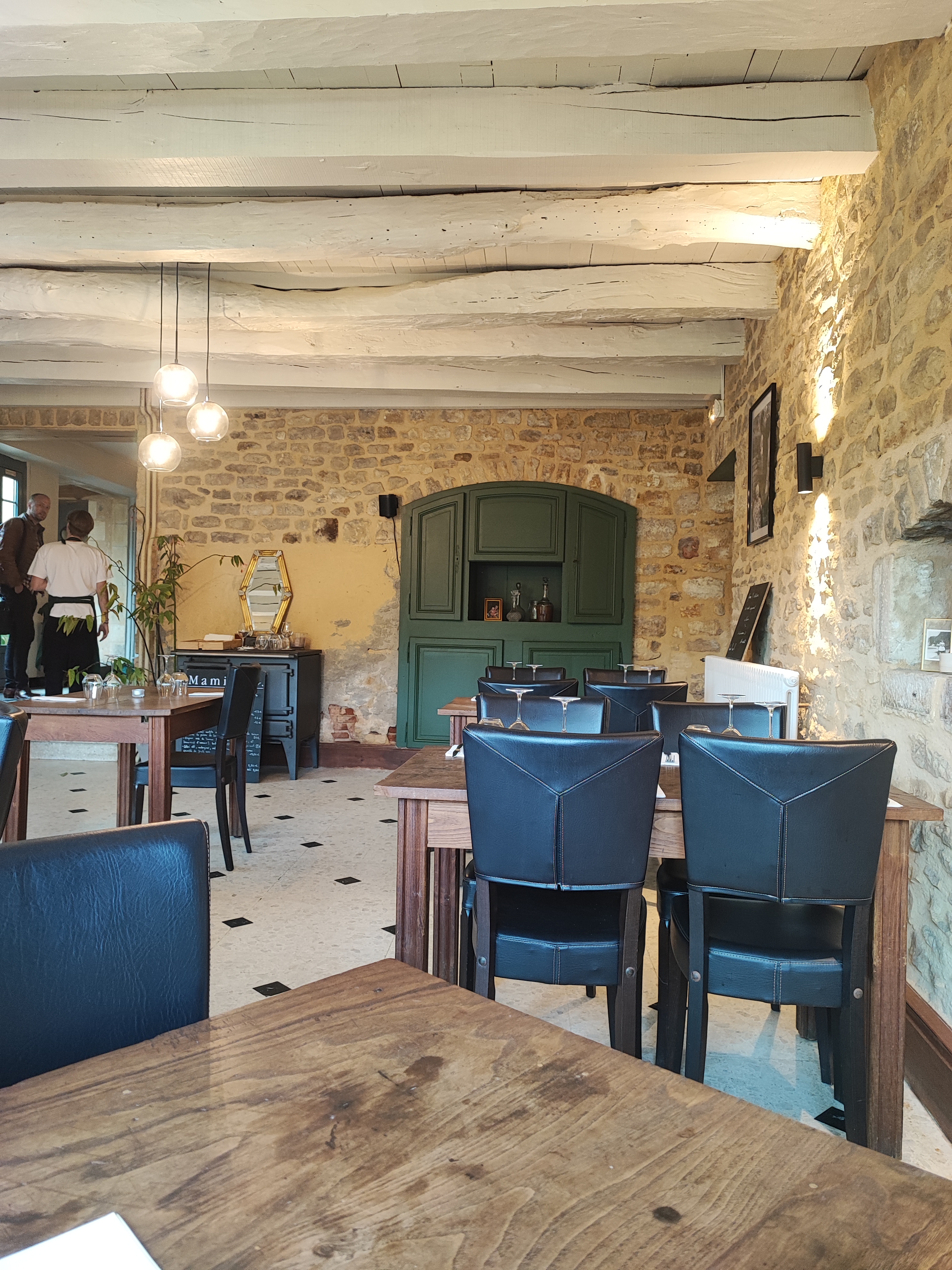 Avec nos gentils voisins, nous avons célébré le printemps jeudi dernier chez Mamie M. Plusieurs personnes nous avaient conseillé de manger là-bas et ils avaient raison. L’arbre emblématique au-dessus de la terrasse du resto est soutenu, l’intérieur est convivial et l’atmosphère est optimale. Ajoutez à cela les délicieux vins locaux qu’ils vous conseillent avec amour, le plat végétarien le plus savoureux que j’ai mangé jusqu’à présent en Dordogne et l’attention personnelle qui se démarque. Tout est beau, savoureux et agréable chez Mamie M. Nous reviendrons bientôt.