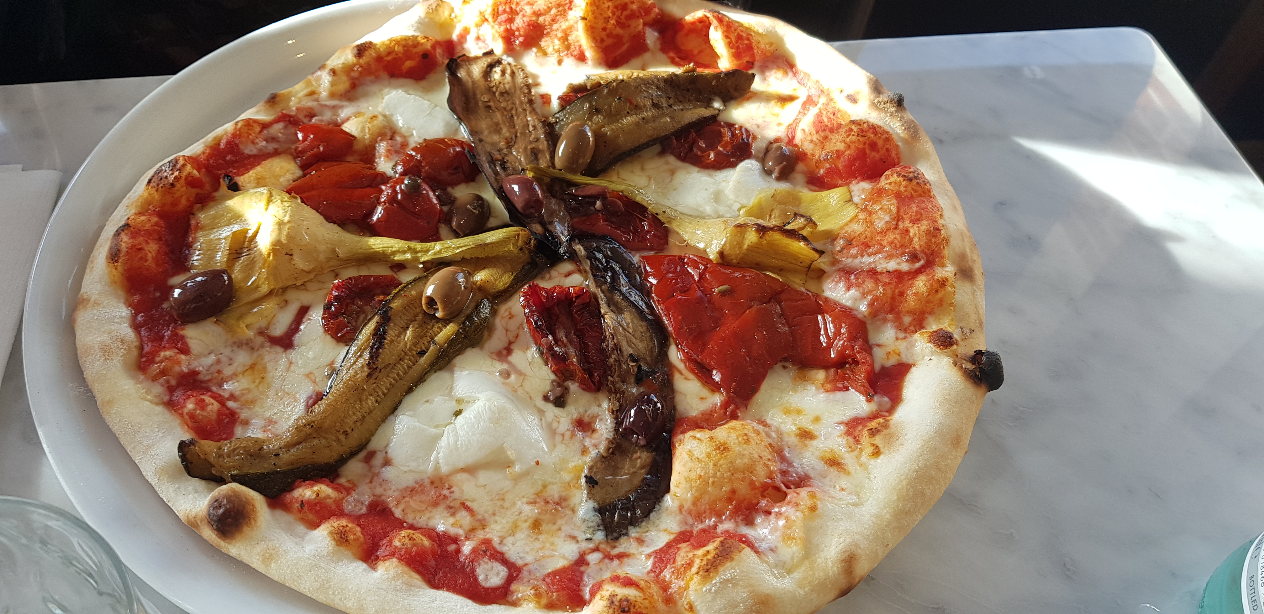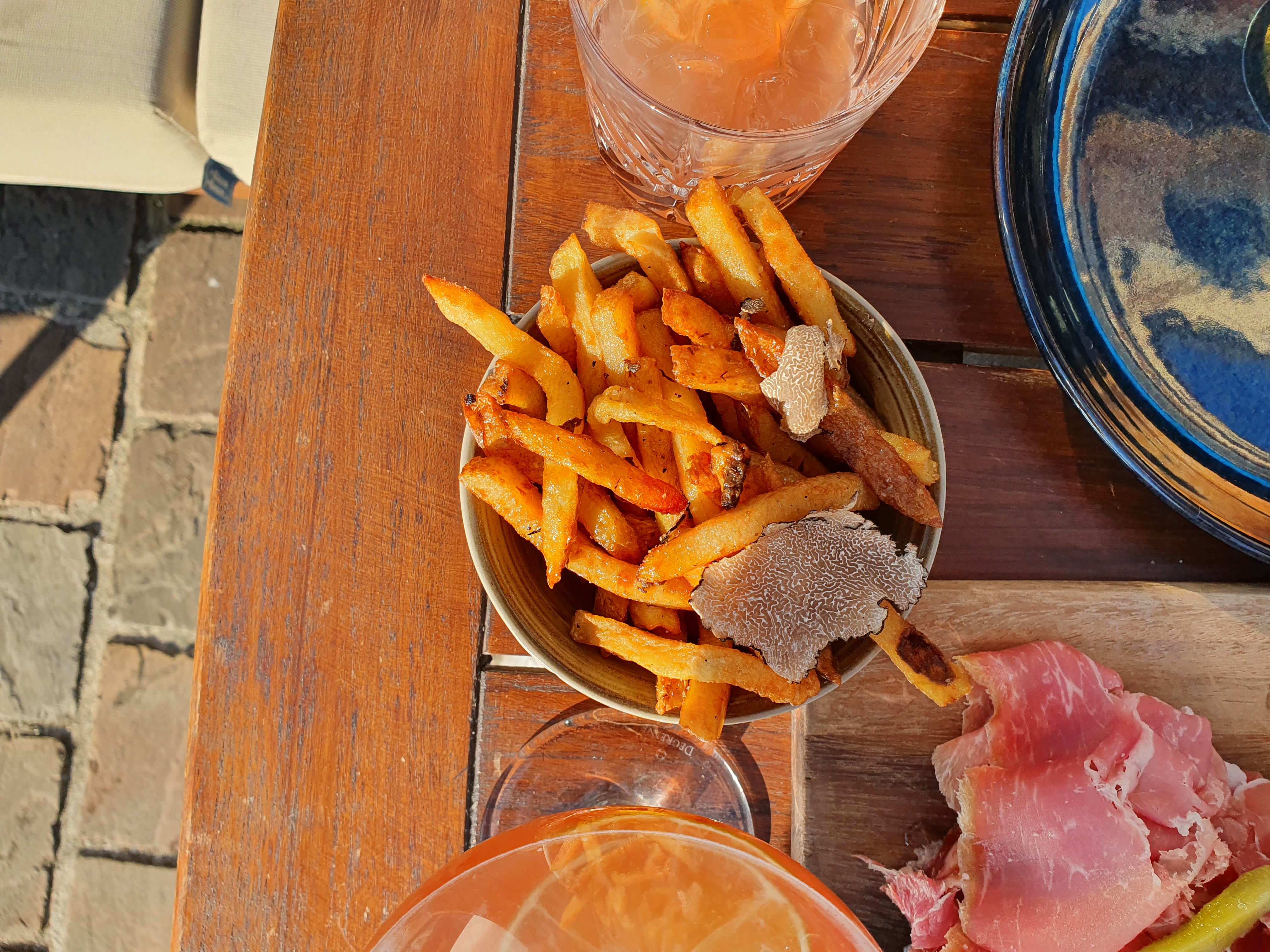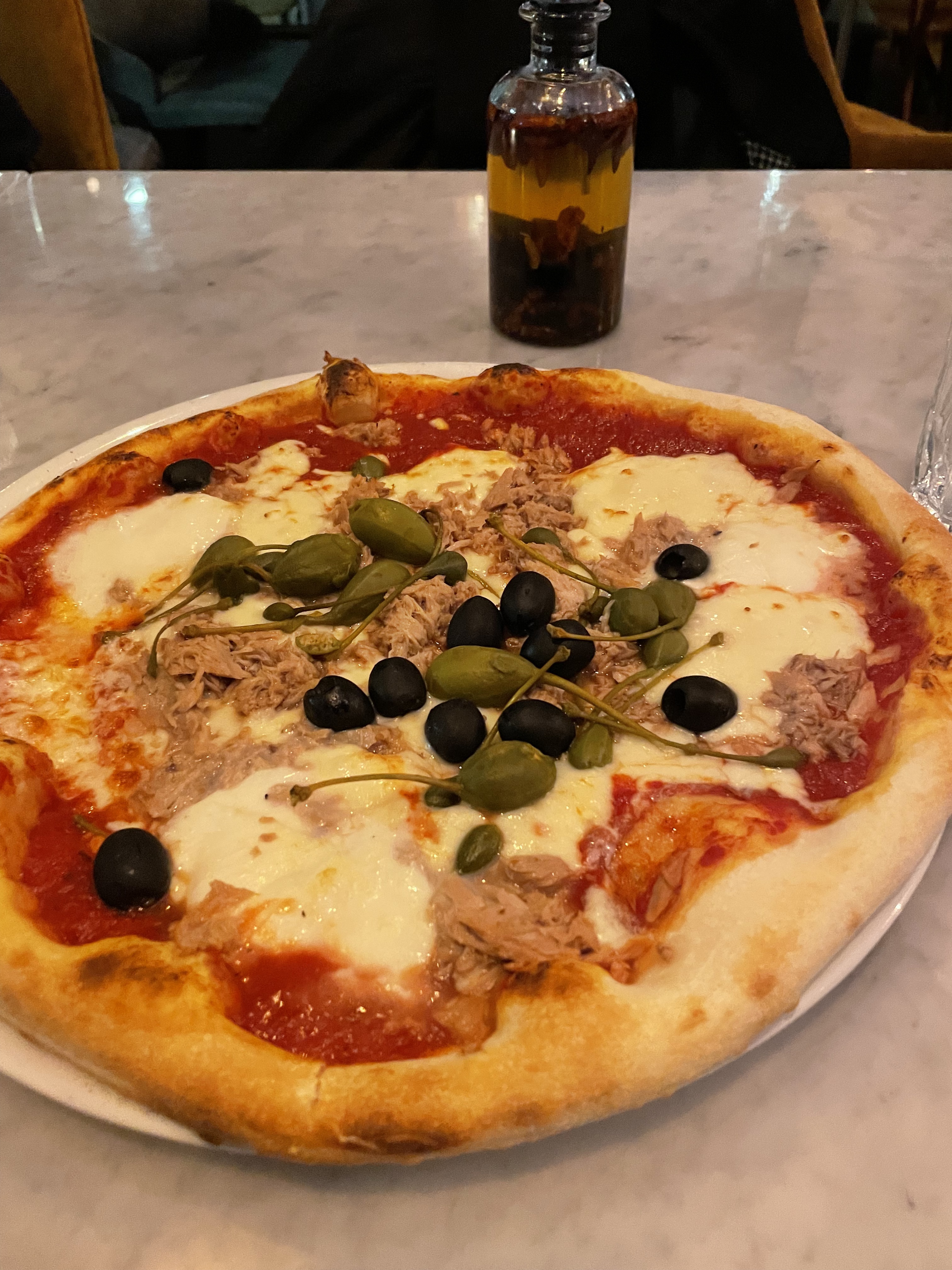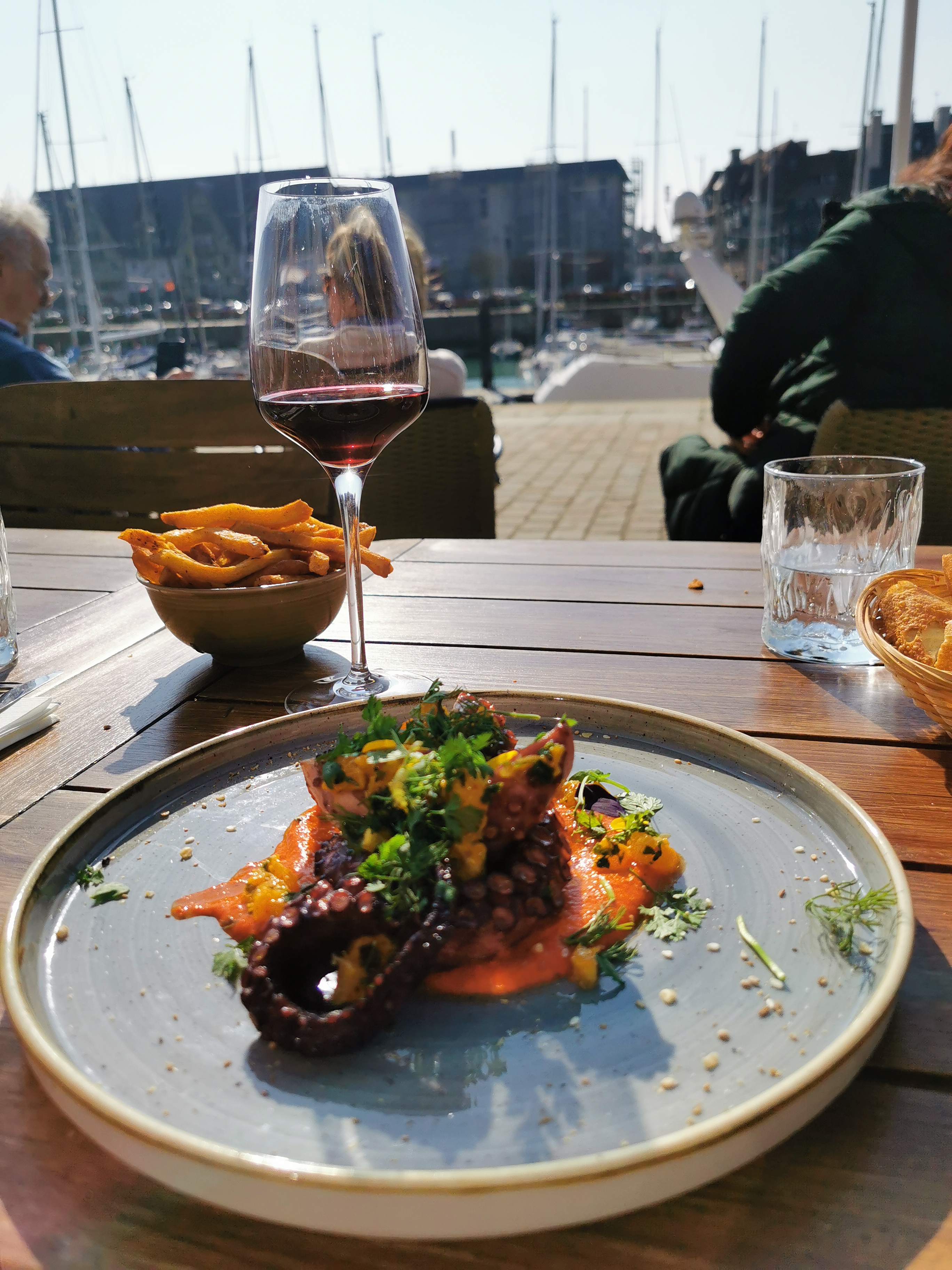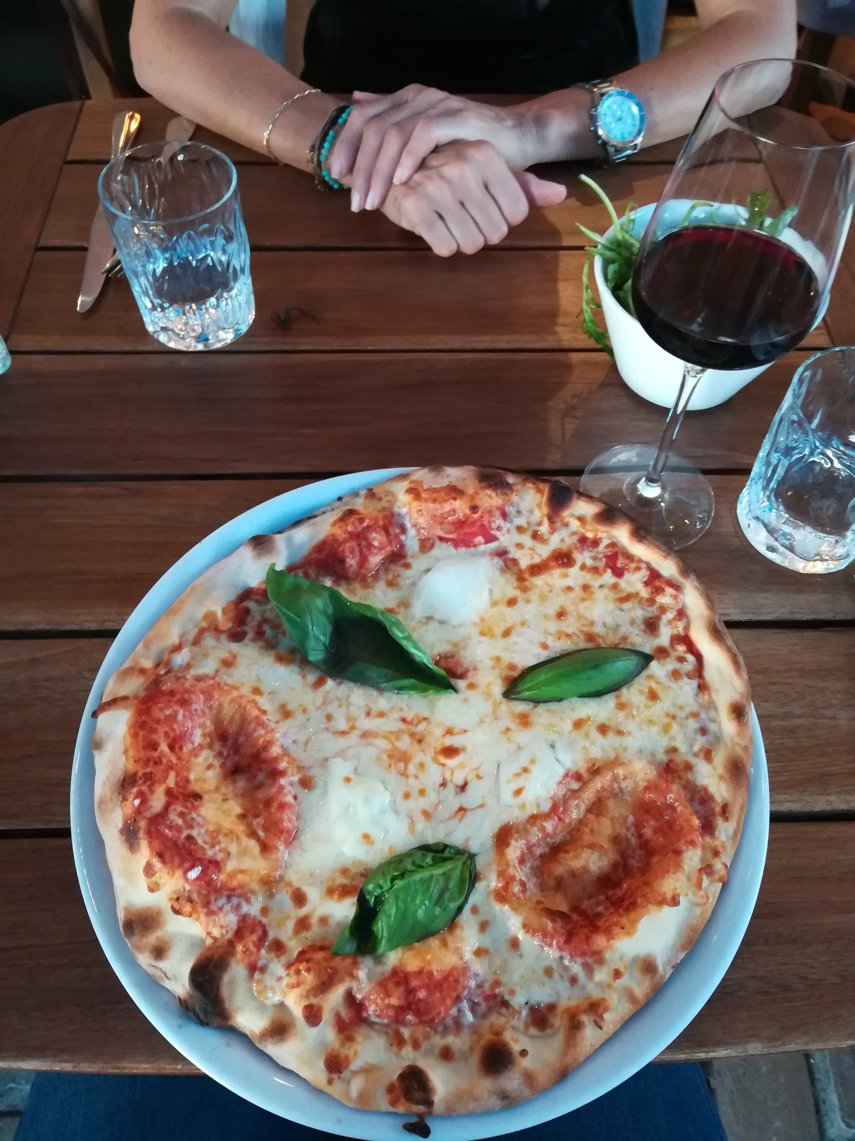 Nous nous sommes fiés aux avis Google. Et c’était une erreur. L’endroit est cosy et semble, au vu des commentaires, servir des repas de qualité… mais non. On m’aurait demandé de préparer moi-même des mojitos avec des produits de mauvaise qualité, j’aurai certainement pu faire mieux. C’était de l’eau, à peine pétillante, et un semblant de goût de citron. Et pour ce qui est du plat… on a vu une pizza à la truffe à 31 euros. A ce prix-là, on se dit que soit on est sur une pizza de folie, soit on est des pigeons (je vous donne déjà la réponse, c’est la 2eme option) La pâte à pizza ressemblait à une pâte achetée en supermarché, et pour 31 euros, la garniture, la texture ou encore la quantité de truffe sur le dessus de la pizza et dans la crème sont à revoir. Il suffit de voir les photos pour se rendre compte que ça n’en vaut pas le coup. Dommage pourtant, la vue sur le port était sympa. Je pourrai éventuellement m’y arrêter une autre fois… mais pour boire un verre de vin en terrasse uniquement.