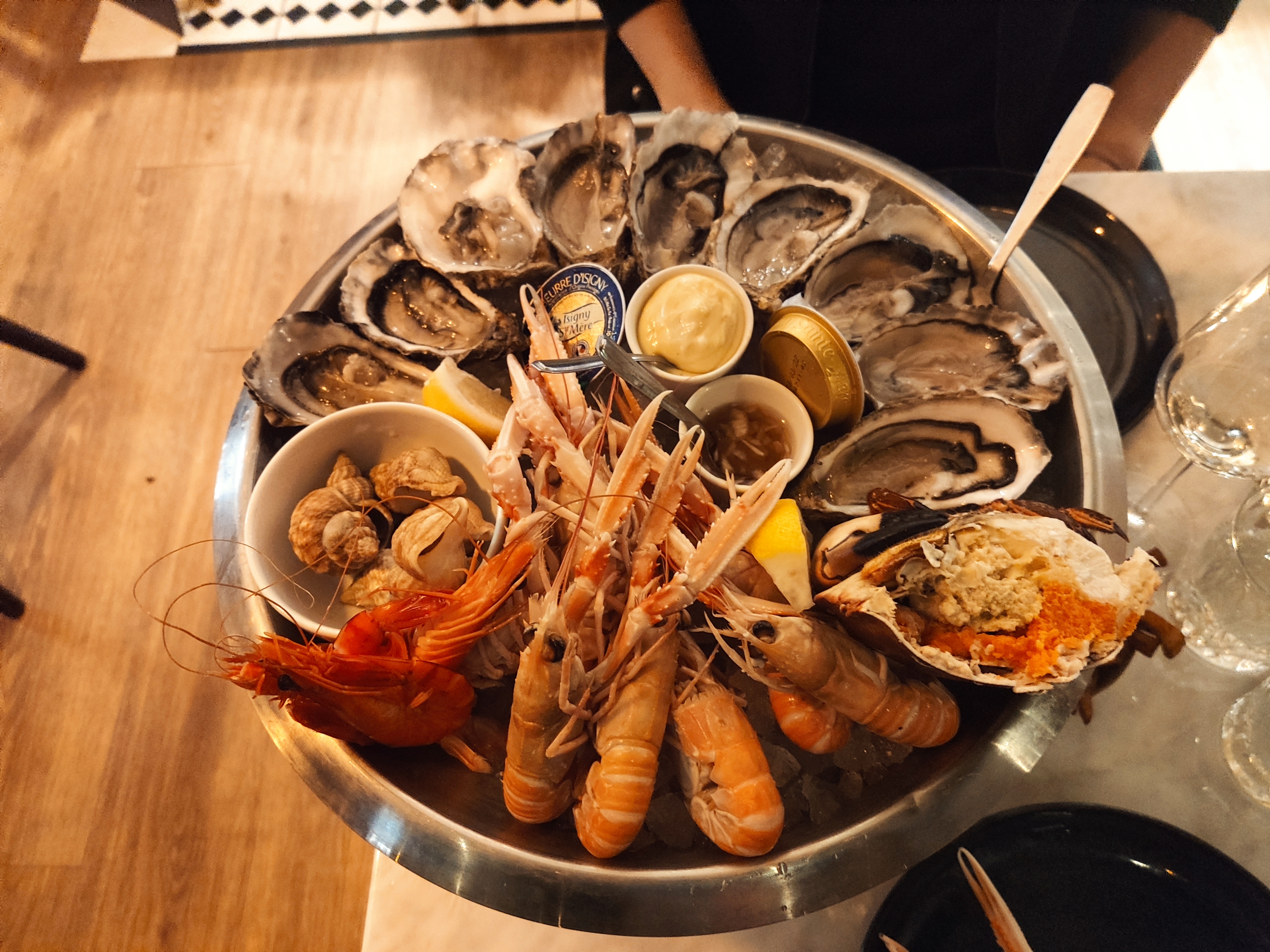 Restaurant très bien placé au bord des quais, au calme des passages malgré un weekend de Pâques chargé à Deauville. La nourriture est très bonne et je dis ça après avoir gouté tous les plats d'une table de 6 personnes. Le plateau de fruits de mer pour deux est excellent, bien garni et très frais (bon ok j'ai eu une langoustine trop cuite). Mention spécial à notre serveur Sam pour sa sympathie et ses conseils et Maël le gérant. Au plaisir d'y retourner. Corentin