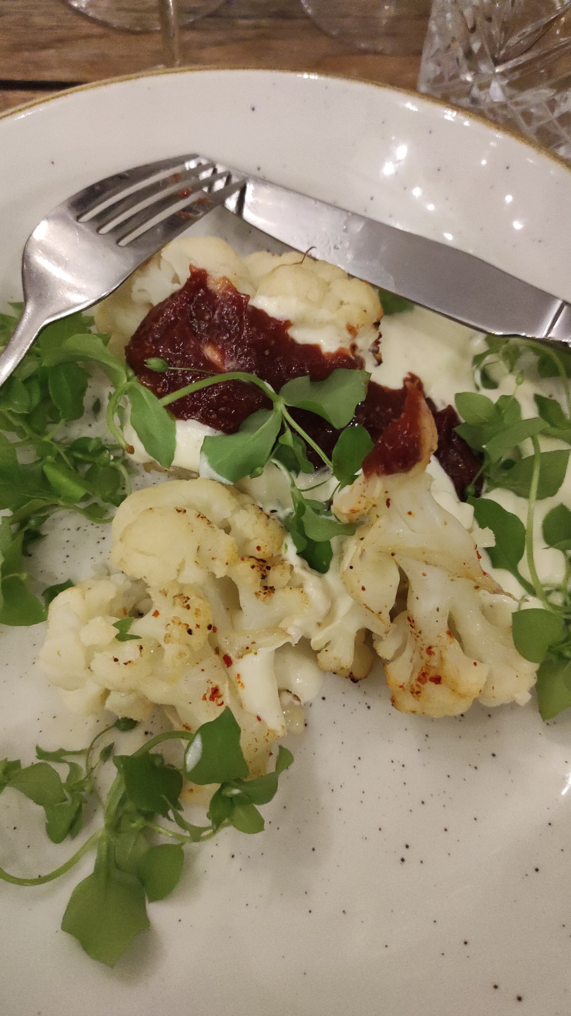 On était en groupe, donc le choix était limité, mais quand-même...J'ai pris un plat veggie qui s'est avéré être du chou fleur avec un peu de sauce légèrement pimentée et de la crème, on aurait dit un plat servi à la cantine. Et le dessert était une ganache chocolat mais en vérité c'était de la mousse. Sur les viandes beaucoup d'assiettes renvoyés en cuisine car pas chaudes. Pas terrible franchement...