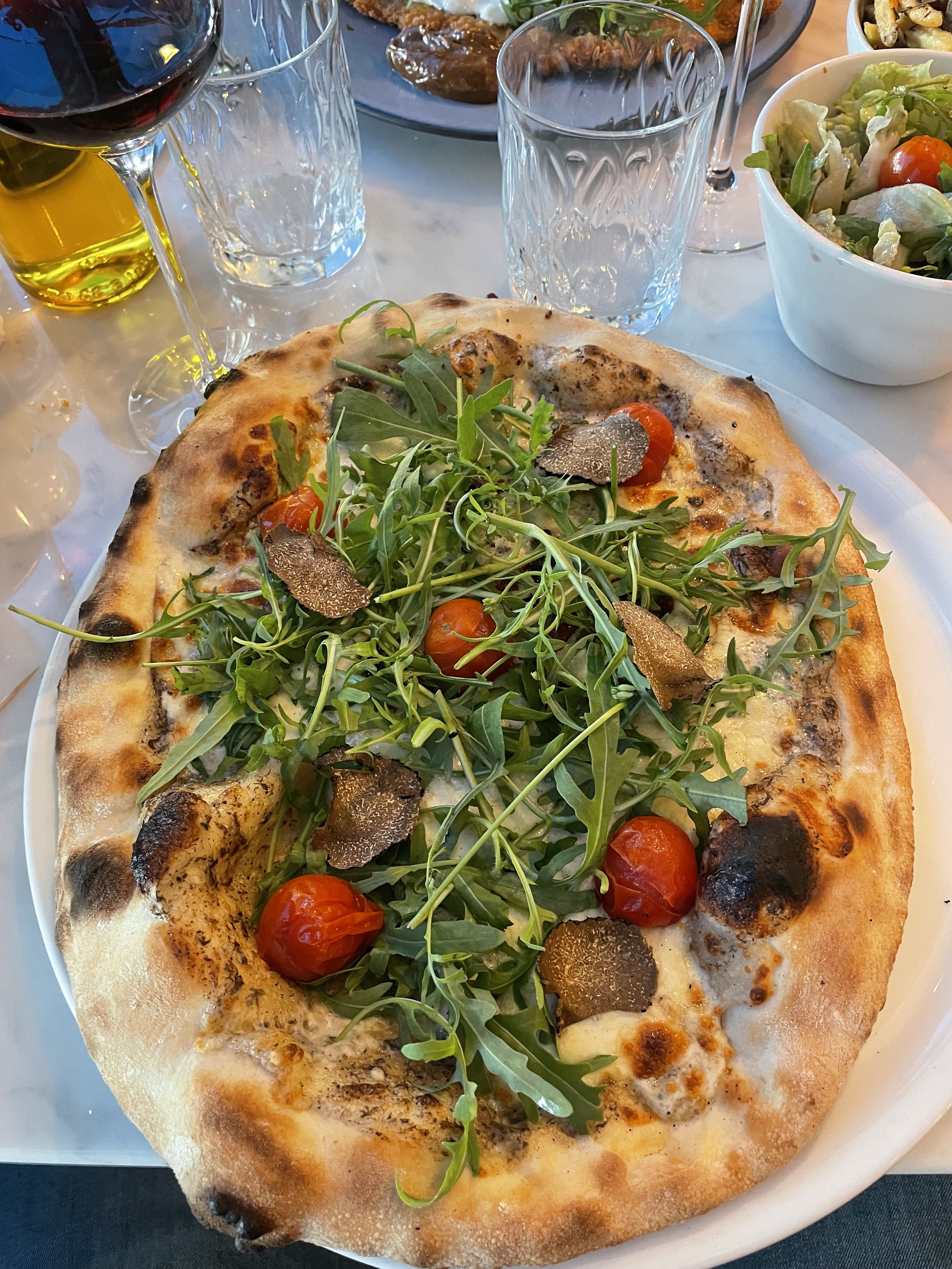 Le restaurant est bien situé, l’intérieur est jolie mais nous avons été placé à l’opposé où c’était moins lumineux loin des autres clients près de la cuisine. Le prix des plats est bien trop cher pour ce que c’est, très peu de pâtes servis avec l’escalope milanaise. La pizza à la truffe est bonne mais 33 euros c’est exagéré j’en ai mangé des tout aussi bonne avec plus de garniture qualitative pour 11 euros de moins exemple la queen tartufo de pepepizza à Paris qui a bien plus d’ingrédient. Bref on paye Deauville et le cadre. Point positif ils acceptent nos amis les chiens mais contrairement à un autre client qui a commenté le mien n’a ni eu le droit à une gamelle d’eau ni à des biscuits friandises dommage pour lui.