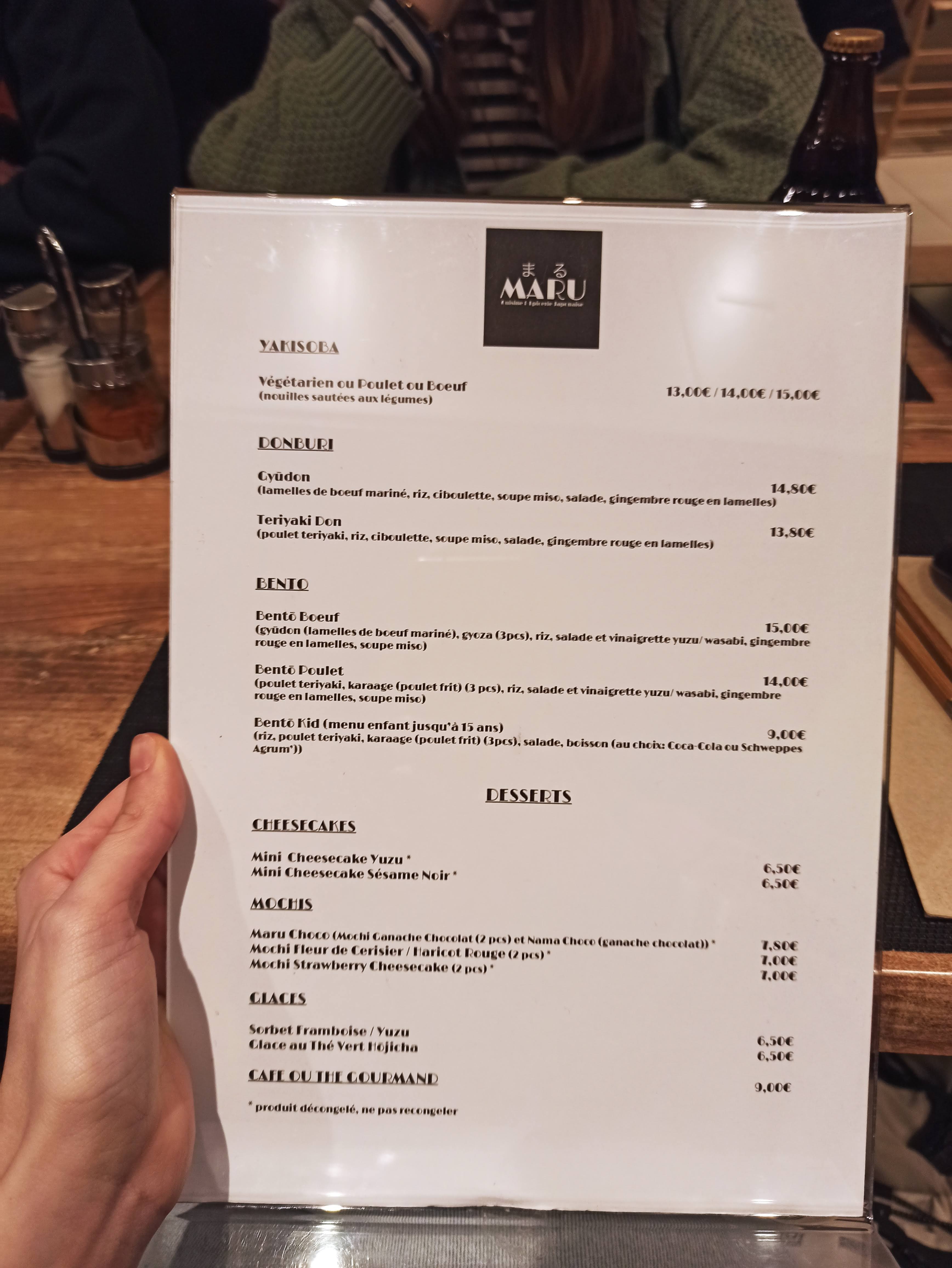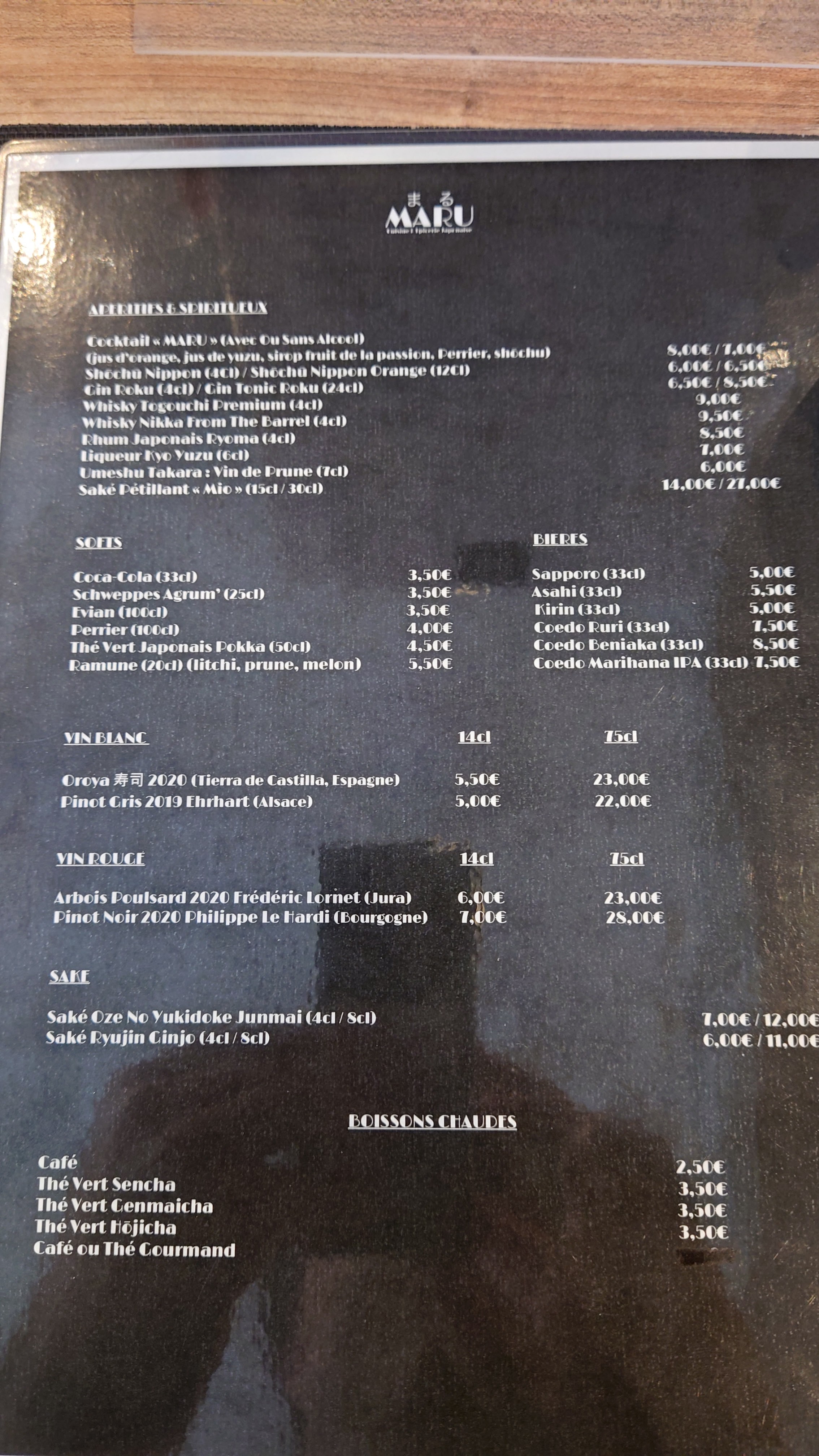 Un moment gourmand dans une vraie cuisine traditionnelle japonaise, et en complément des belles découvertes côté épicerie/spiritueux : nous sommes ravis de notre passage chez Maru ! Nous y retournerons avec plaisir pour tester d'autres mets de la carte.