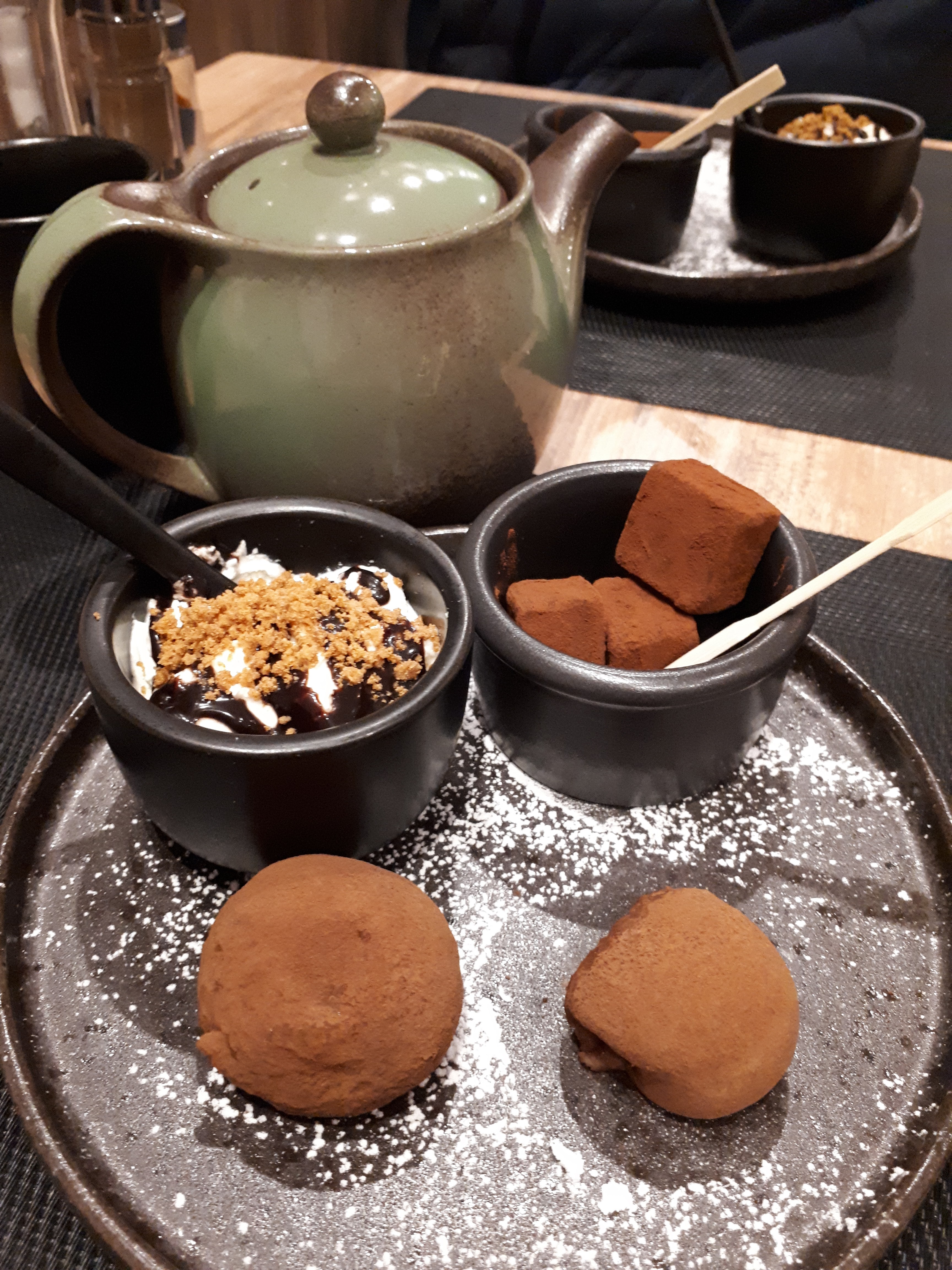 C'était une première pour moi et j'ai adoré 😊 le service très sympathique, le repas un délice avec une belle présentation et une expérience incroyable avec leur mochi au chocolat, une texture très agréable en bouche 😋🤤 on reviendra sans hésiter !