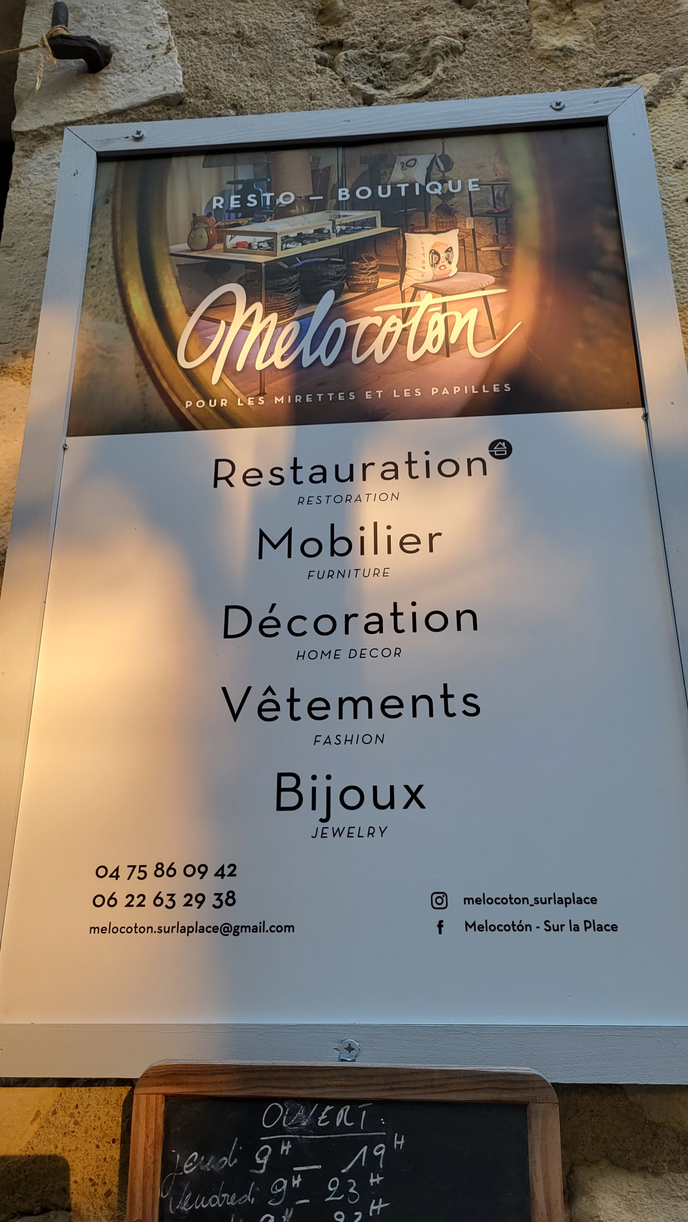 Un endroit incroyable que l'on ne s'attend pas à trouver dans ce petit bled de Cliousclat. Super bonne bouffe, petite carte 2 entrées, 2 plats et des desserts, tout fait maison et hyper raffiné. La patronne qui est aussi au service hyper sympa. Cerise sur le gâteau, vous avez à l'étage une boutique fringues, déco, bijoux.... un moment hors du temps sur une petite place piétonne avec le jeux de boule sous les platanes. Tout y est. Merci à Melocotón.