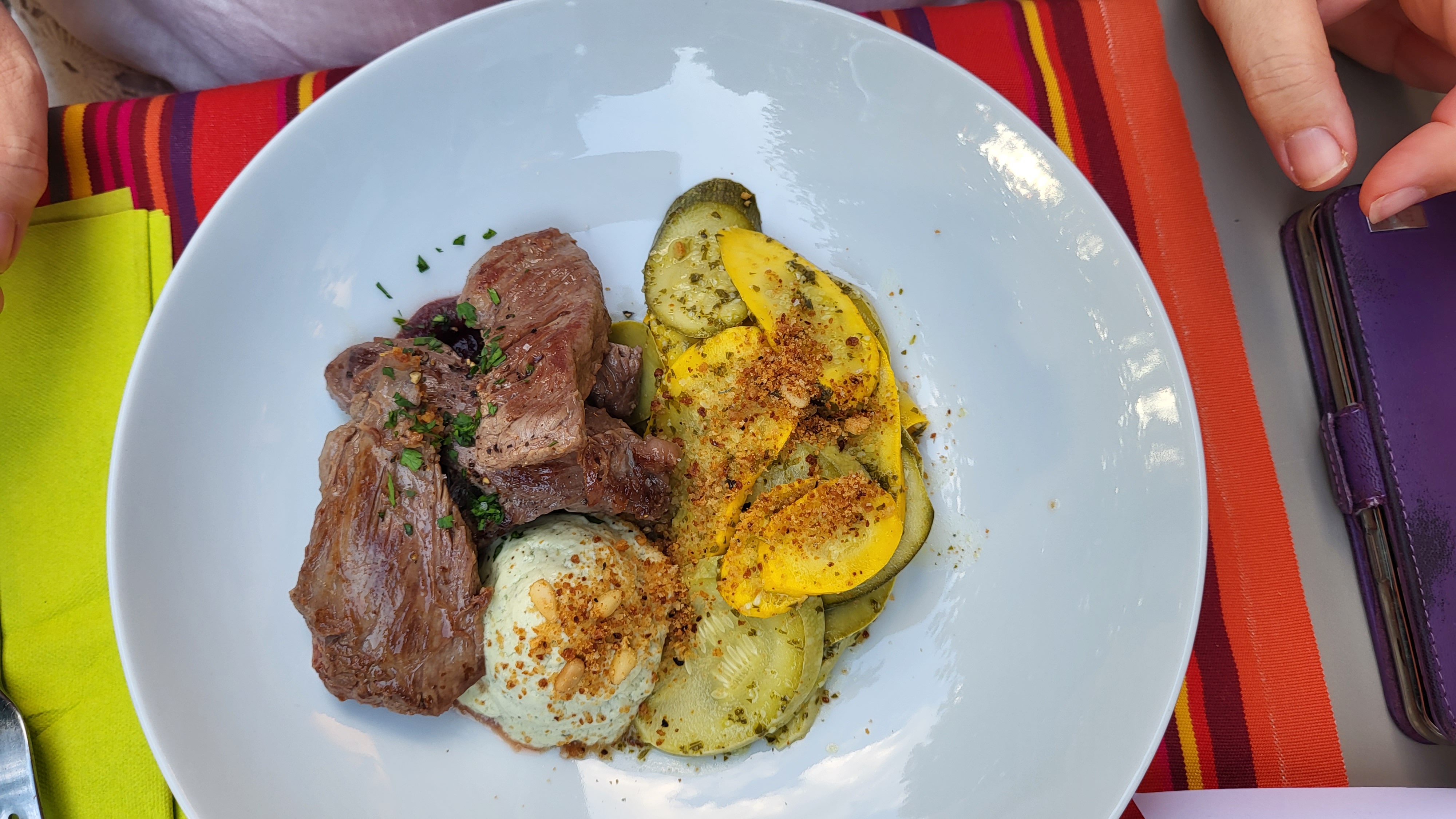 Un petit resto bien mignon, pluie ne permettant pas de manger dehors mais c’est pas grave l’intérieur est mignon! Cuisine au top et équipe super sympa. Je recommande