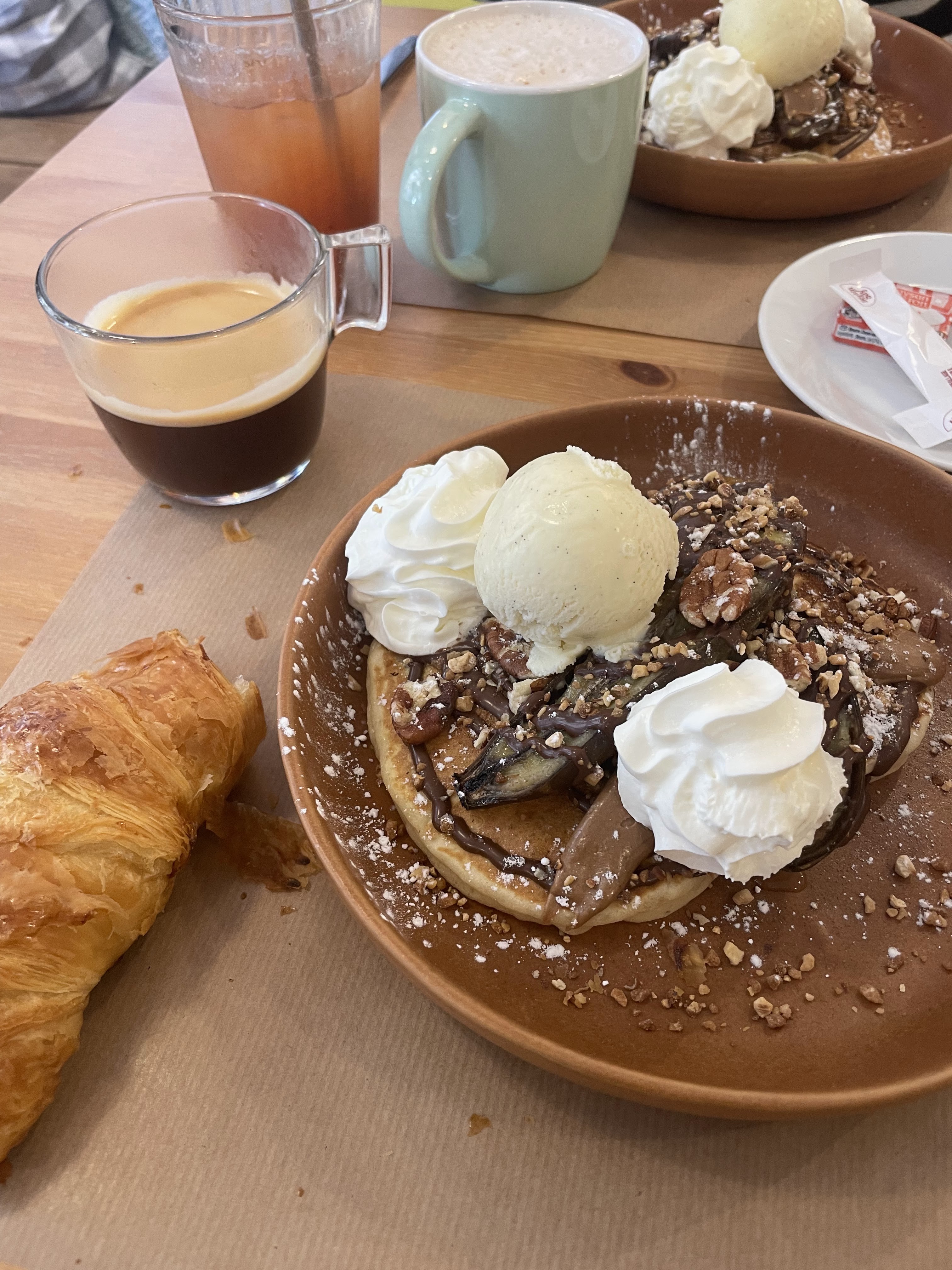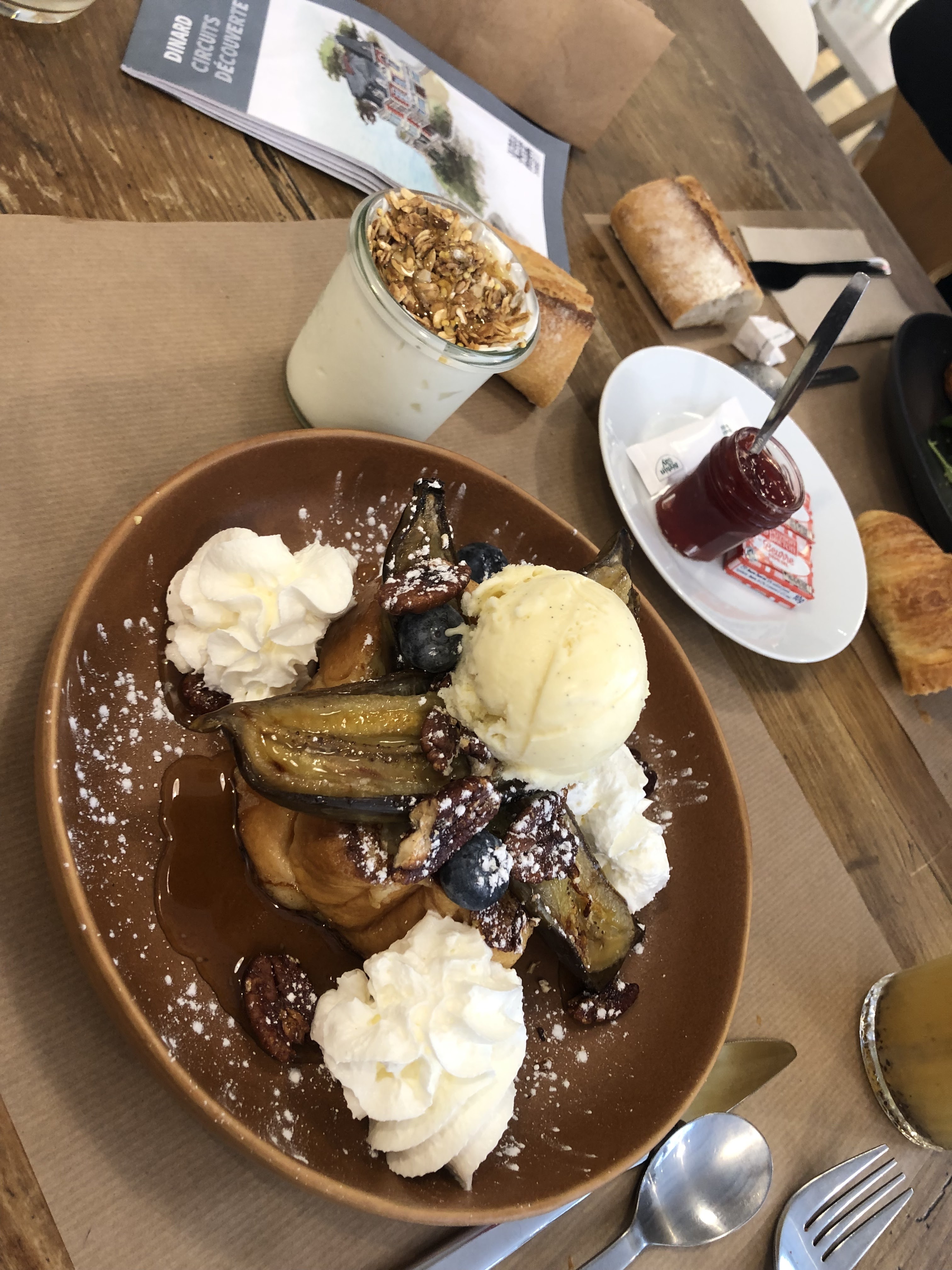 Brunch très sympa sur Dinard. Nous étions 5 nous avons pris 3 brunchs salé et deux brunchs sucré. Le Brunch salé était typiquement anglais. Pour le brunch sucré nous avons un granola avec un fromage blanc et pancakes bananes sirop d'érable. Le brunch comprend une boisson chaude et froide. Très bon rapport à qualité prix. Boutique très sympa et chaleureuse. La serveuse très sympathique et souriante.