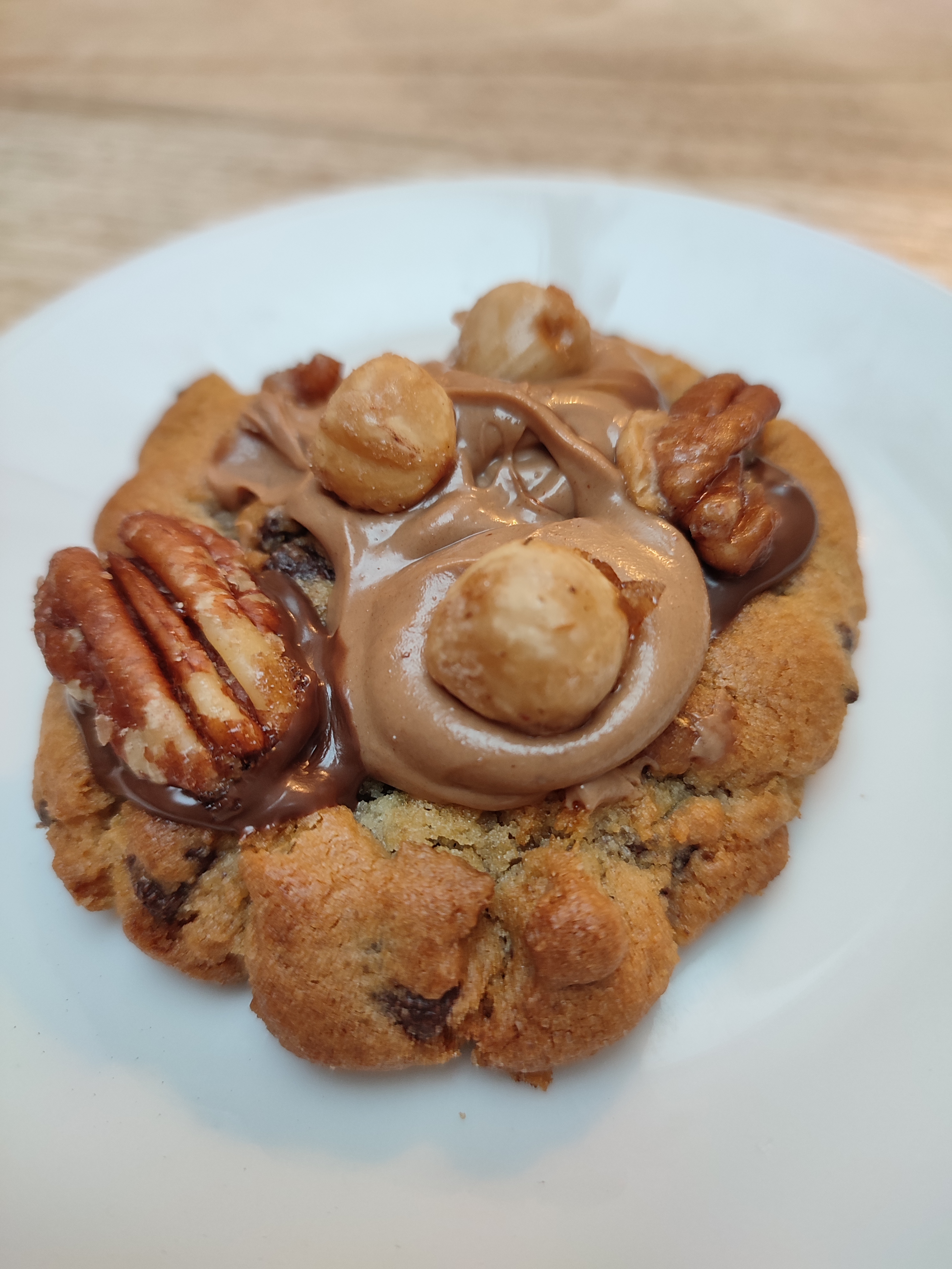 Petit goûter dimanche après-midi. C'était assez calme La tarte au chocolat - cookie était excellente la part était un peu petite pour le prix mais vraiment excellente. Les cookies étaient aussi Big et excellents. Thés et tisanes je recommande aussi. L'endroit est très cosy et il y a de quoi se régaler. Petit wifi gratuit et petite terrasse.