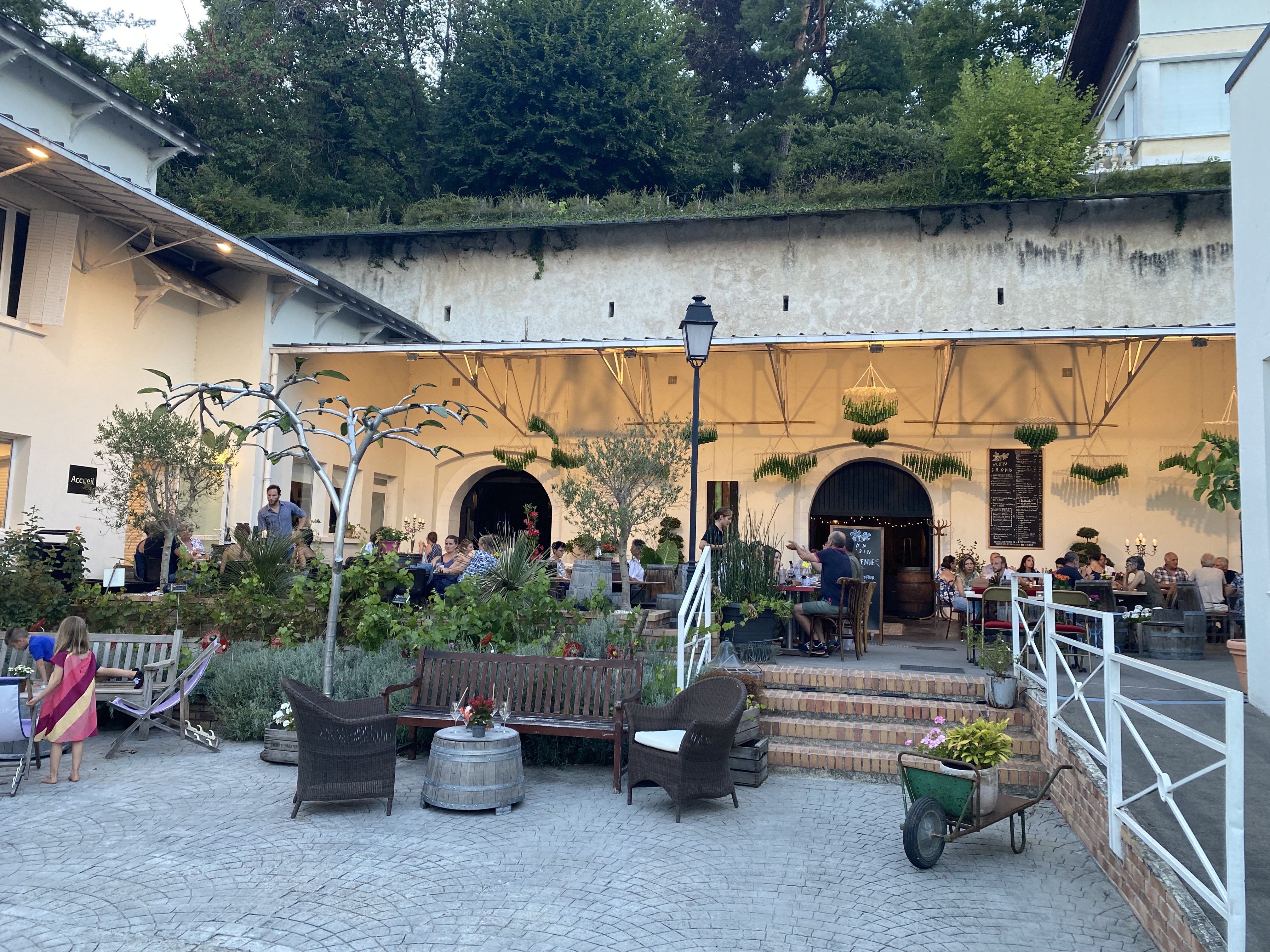 Nous avons adoré passer la soirée au jardin, esprit guinguette et conviviale. Repas savoureux au son du groupe entrainant la belle autre.