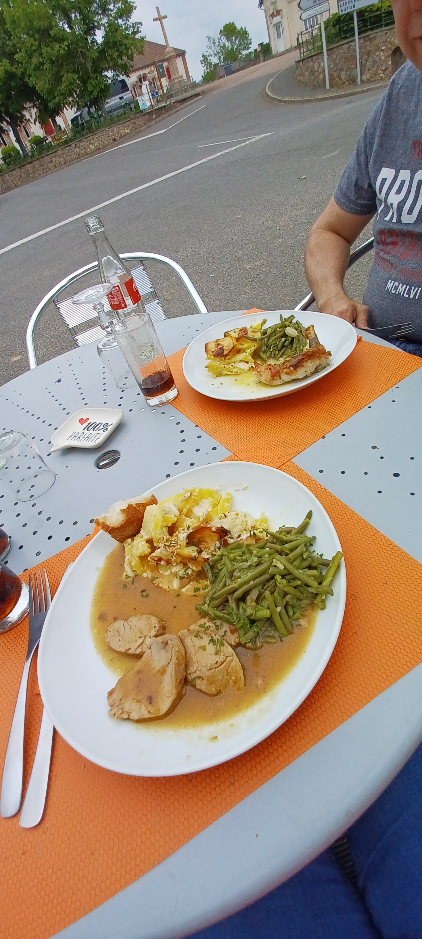 Super restaurant, bonne nourriture. Super carte. Service amical. Un joyau de la France rurale. Jeunes et vieux se mélangent. Au croisement / place du village. La seule circulation était devant le restaurant. C'est si rural.