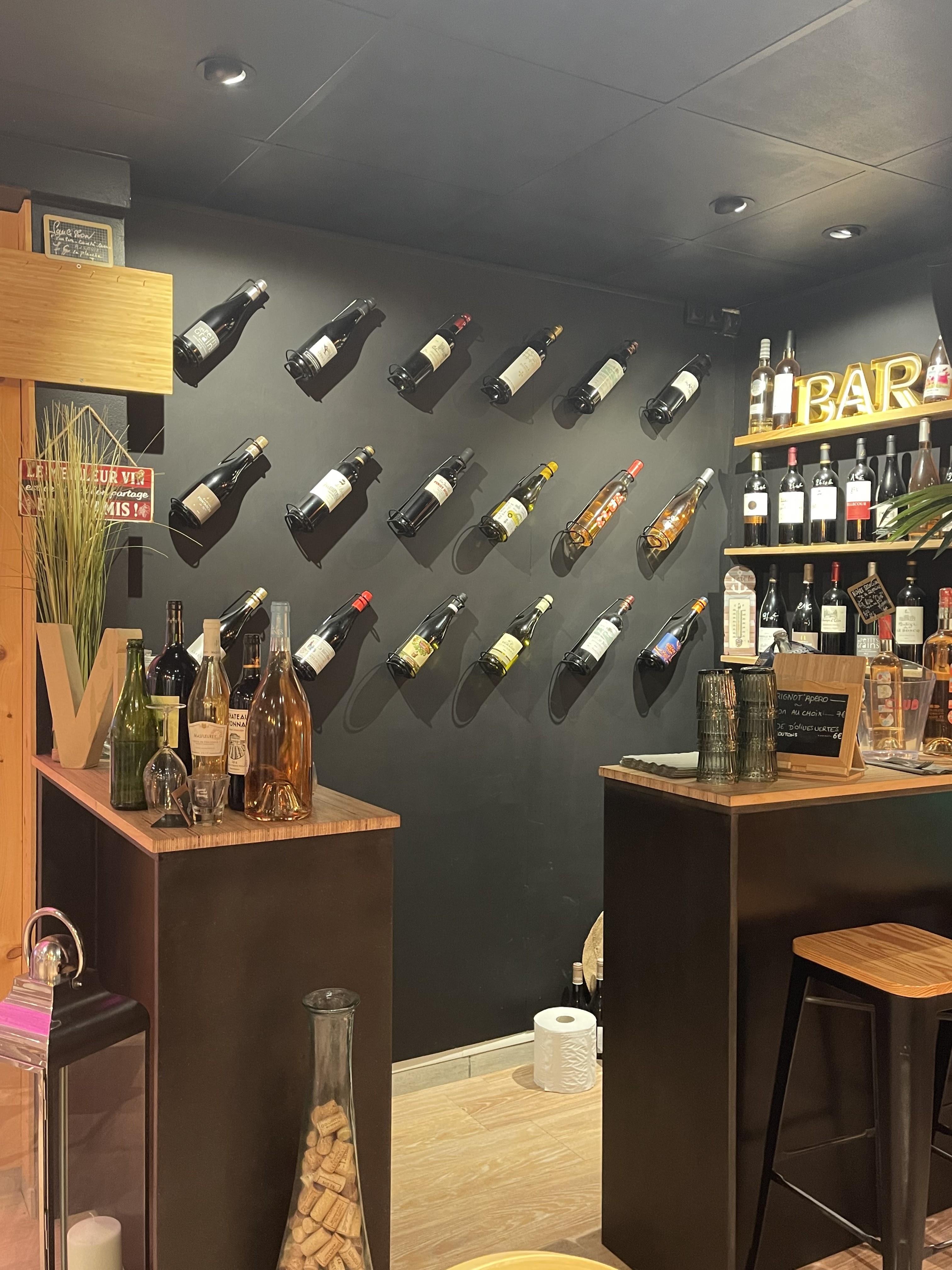 Bien situé bon assortment de vin mais on est arrivé 12.45 et in a bien attendu 45 minutes avant de mangé et le pain du burger était froid les produits sont top niveau fraîcheur mais arrive au WC c'était pas top je m'attendais à mieux pour un nv consept je me dit qu'ils vont s'améliorer vu le premier commentaire ils avait peux être un mauvais jour je dit vous êtes sur la bonne voie car le personnel était super sympa do'c je suis sûr la prochaine foie que je reviens je pourrai modifier mon commentaire bonne continuation