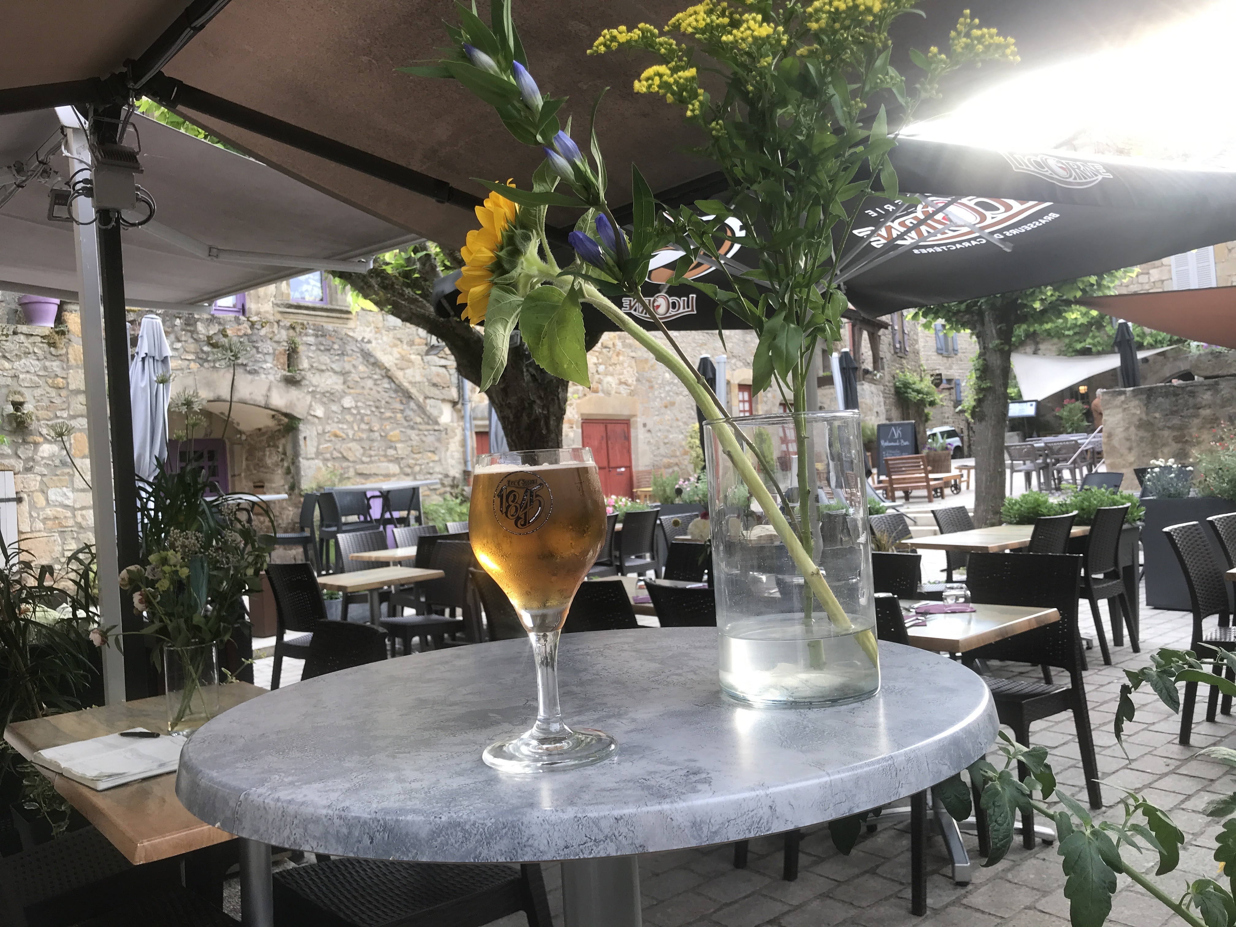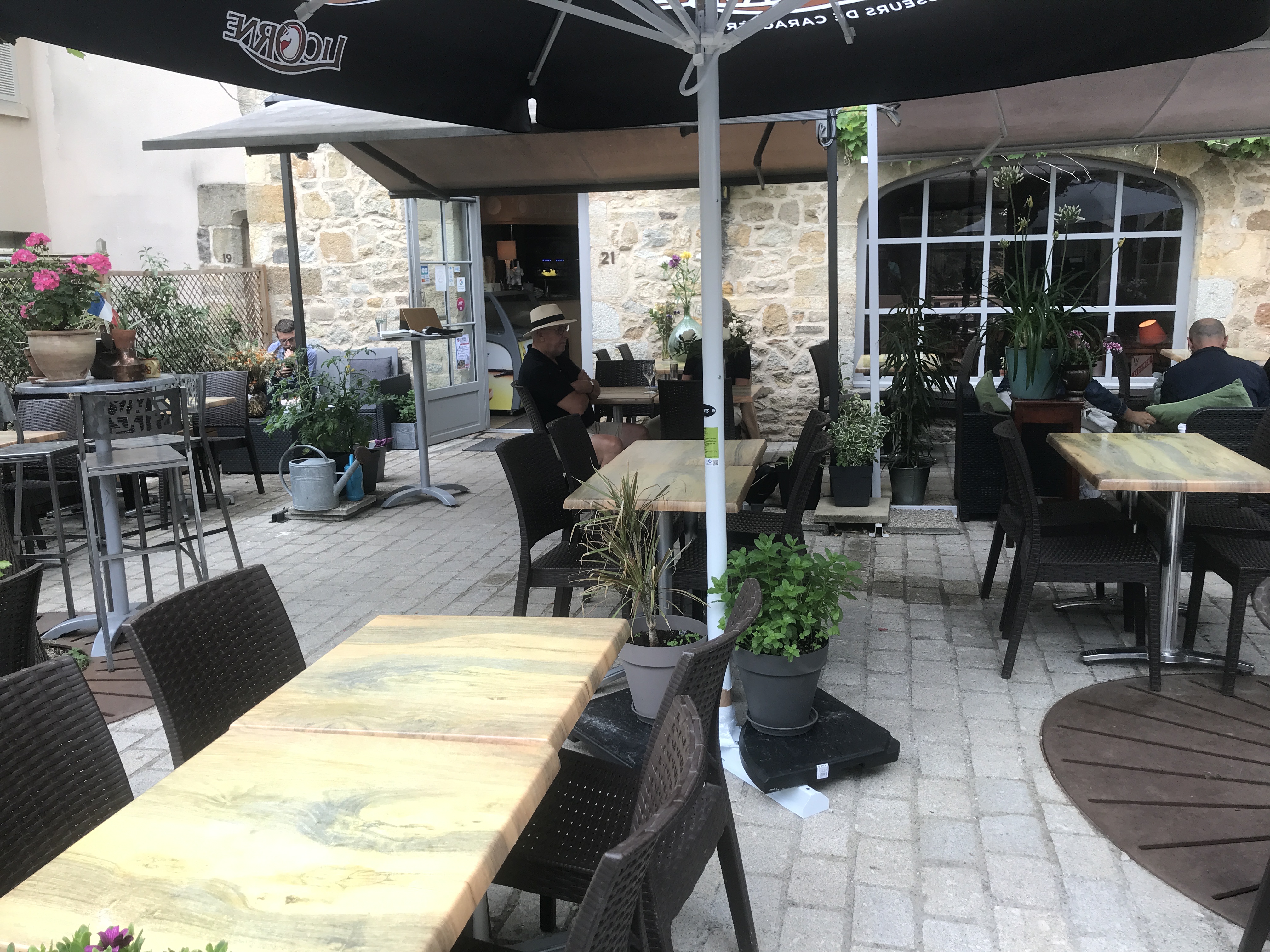 Dans ce superbe village médiéval, on peut ici boire un verre ou même manger un crêpe après avoir deambulé dans les ruelles étroites. La terrasse est agréable et l'équipe de service des plus accueillantes. Ce qui rend la balade encore plus sympathique.