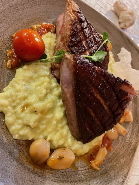 Sabrina le chef, nous à honoré d'un menu qualitatif. Dégustation huile d'olive de producteurs locaux, Accompagnement de feuilletés pour l'apéritif, Amuse bouche beignets de crevettes Un menu travaillé avec des produits frais et locaux. Une bonne ambiance dans un cadre splendide. Vivement cette été pour profiter de la terrasse et de la vue