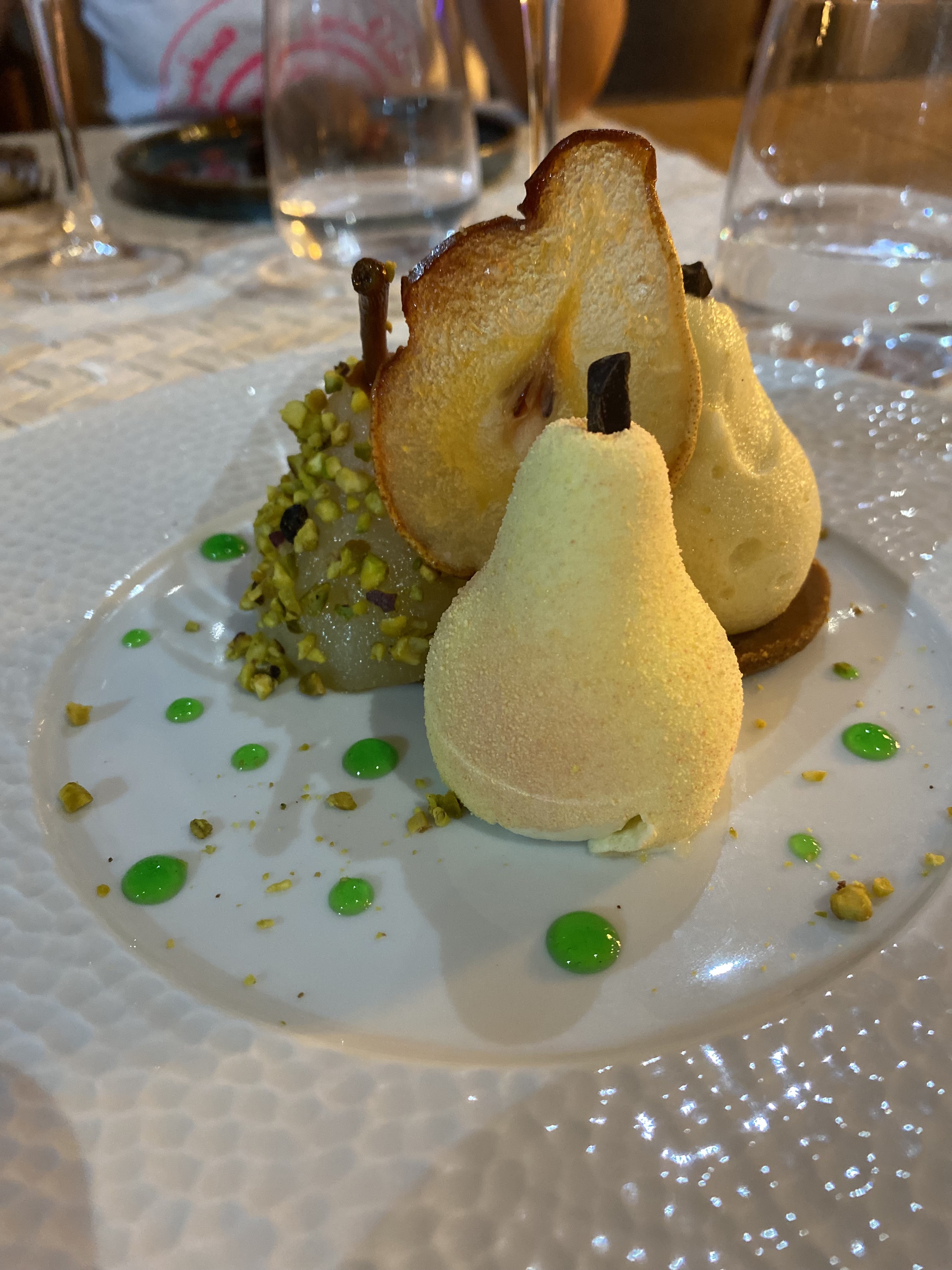 Inattendu, surprenant, charmant! Bâtiment ancien, en face du château. Poutres et plafond haut. Grand tableau Land-Art qui vaut le coup d'œil ! Serveuse très agréable et souriante malgré le masque ! Nous étions 4. Repas raffiné. Eau bio... en quelque sorte... rafraîchissante servie dans une jolie bouteille estampillé du nom du restaurant. J'ai pris les Linguines... à manger avec les yeux... Pour le dessert, je conseille, pour les amoureux du chocolat, une Cabosse... juste fondant, délicieux ! La cheffe est sympa, et le patron aussi ! Trop classe!