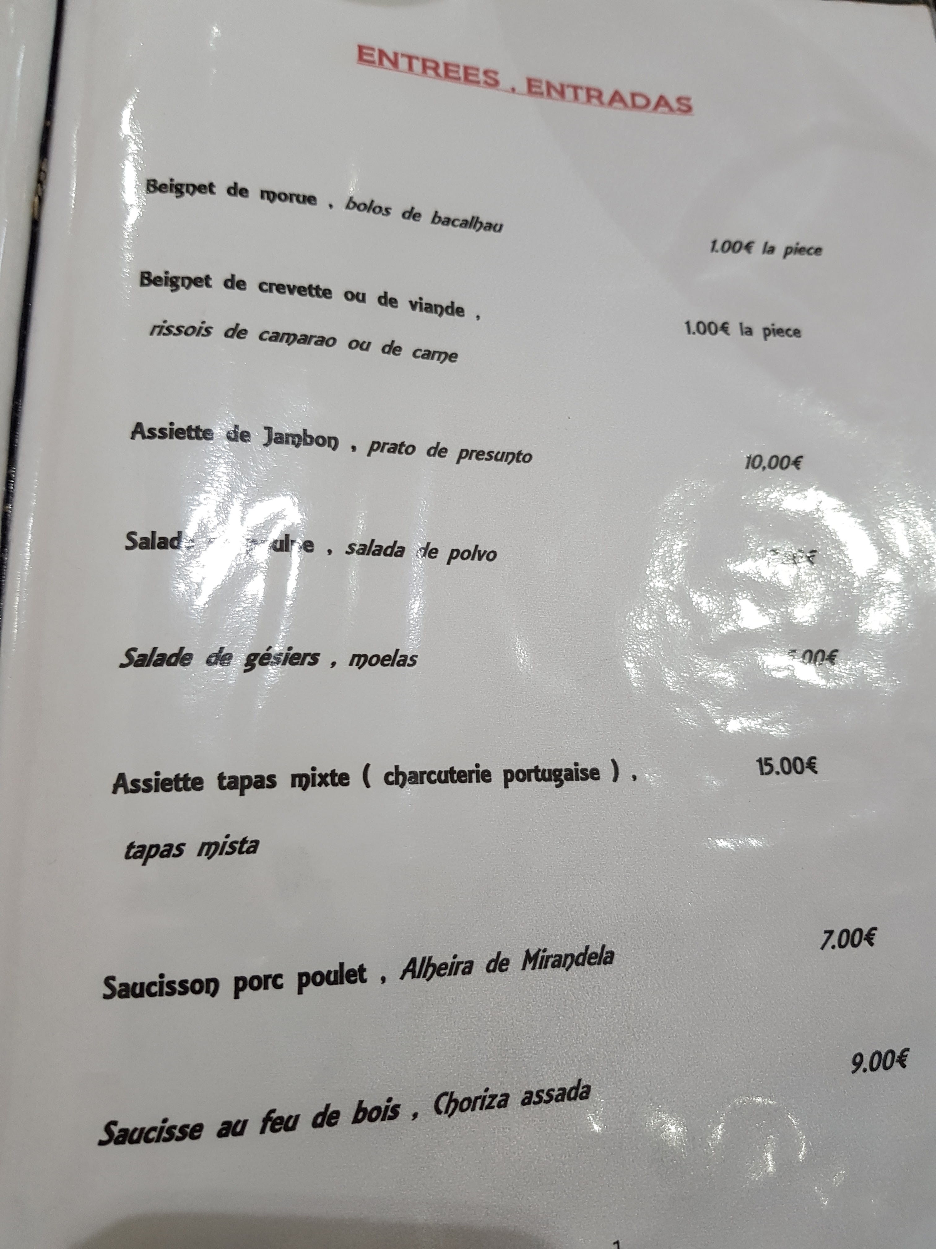 Restaurant repas portugais et français
