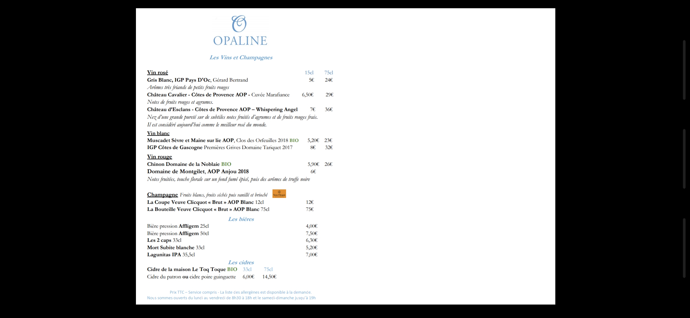 Madame, Merci d'avoir pris le temps de nous donner votre avis sur notre commerce. Nous constatons avec plaisir que notre carte vous a bien plu! N'hésitez pas à tester notre carte lunch la prochaine fois. Bien à vous, L'équipe d'Opaline