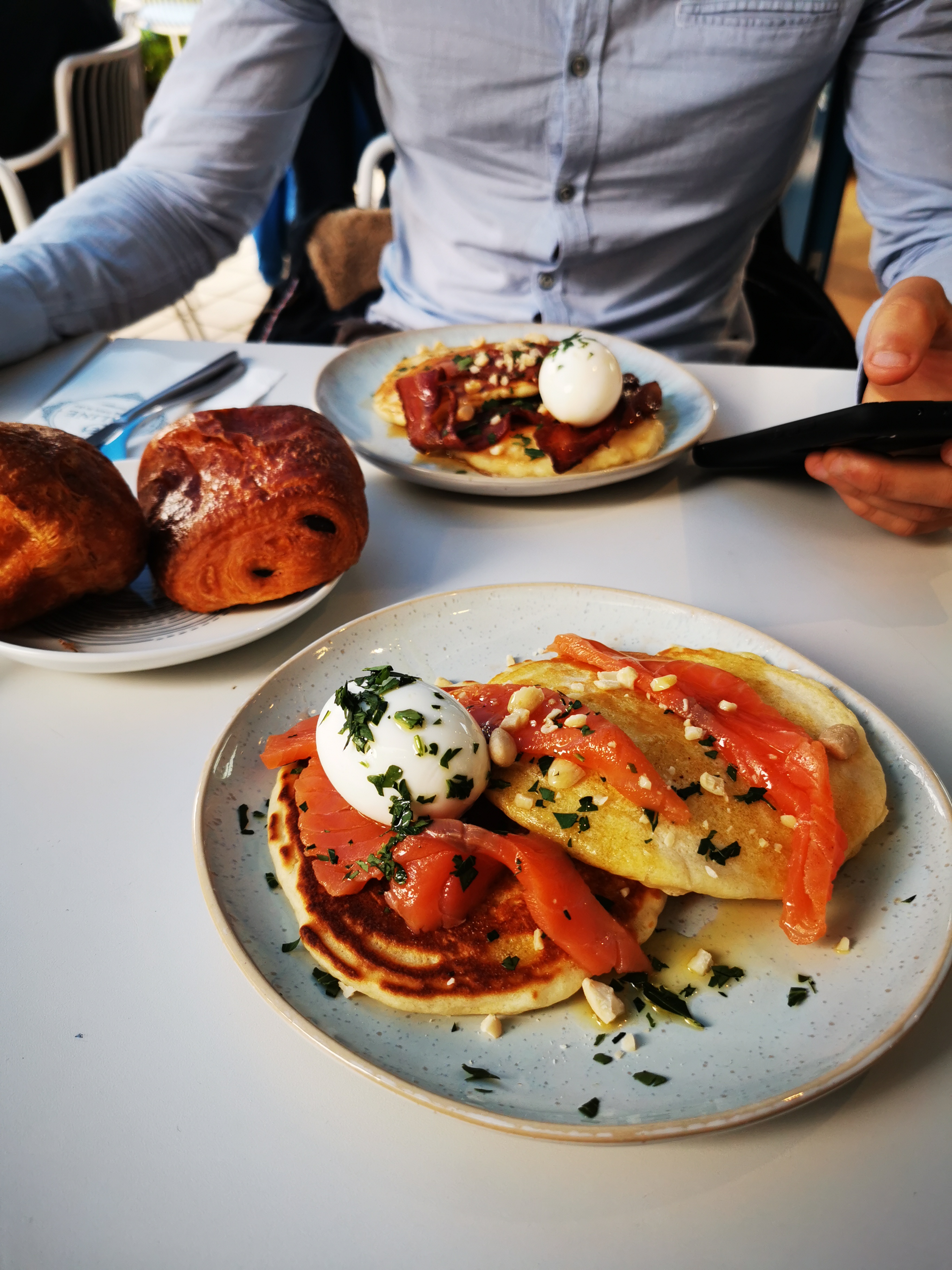 Lieu agréable et personnel très sympathique. Pensez à réserver votre table si vous souhaitez être en intérieur. Le double pankake saumon était très bon !