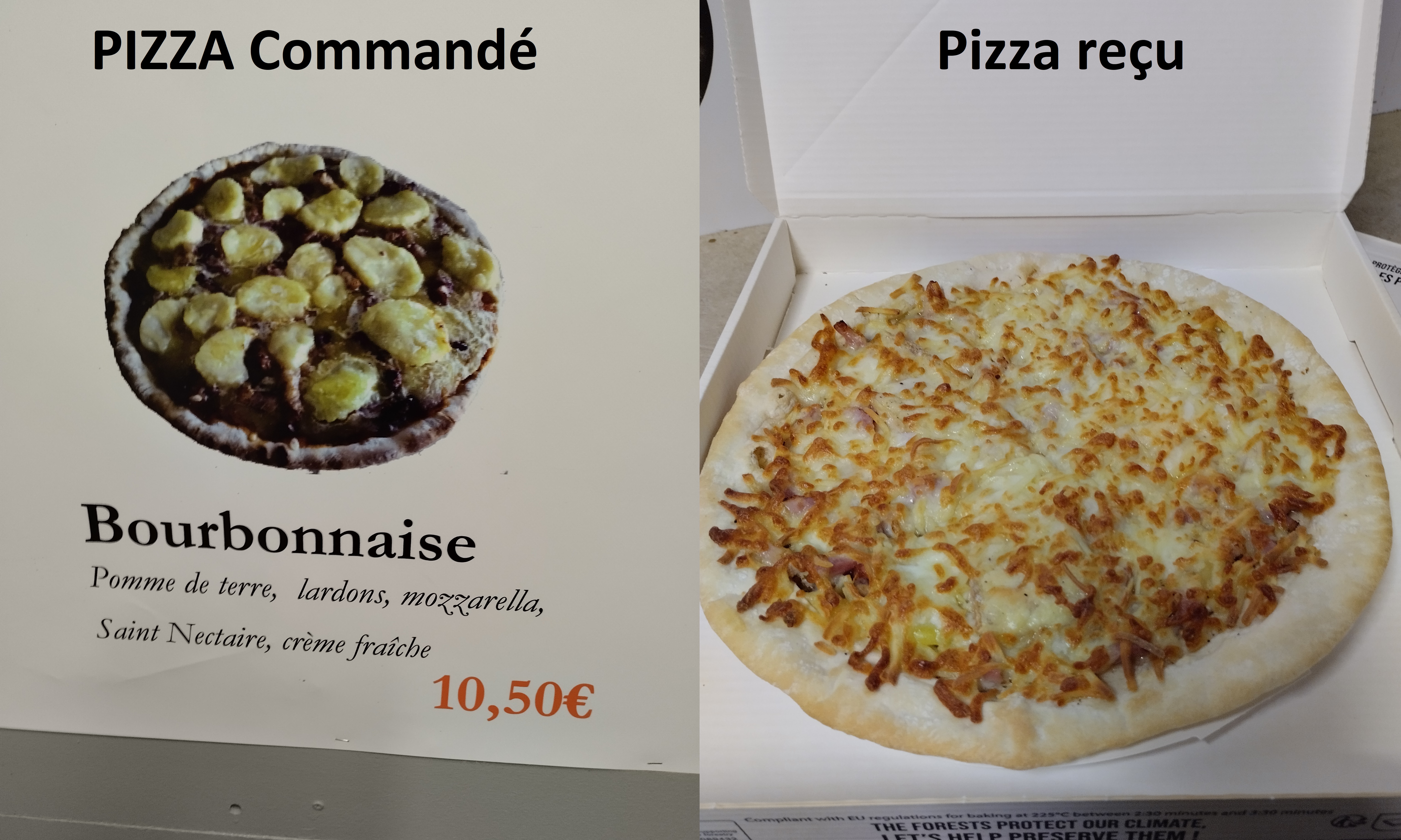 Pizza immonde, les lardons même pas cuit, cru !! Immangeable. Autant ne rien manger. Cela a bien changer en plusieurs années !! Mail envoyer et jamais eu de réponse par la suite. À FUIR !