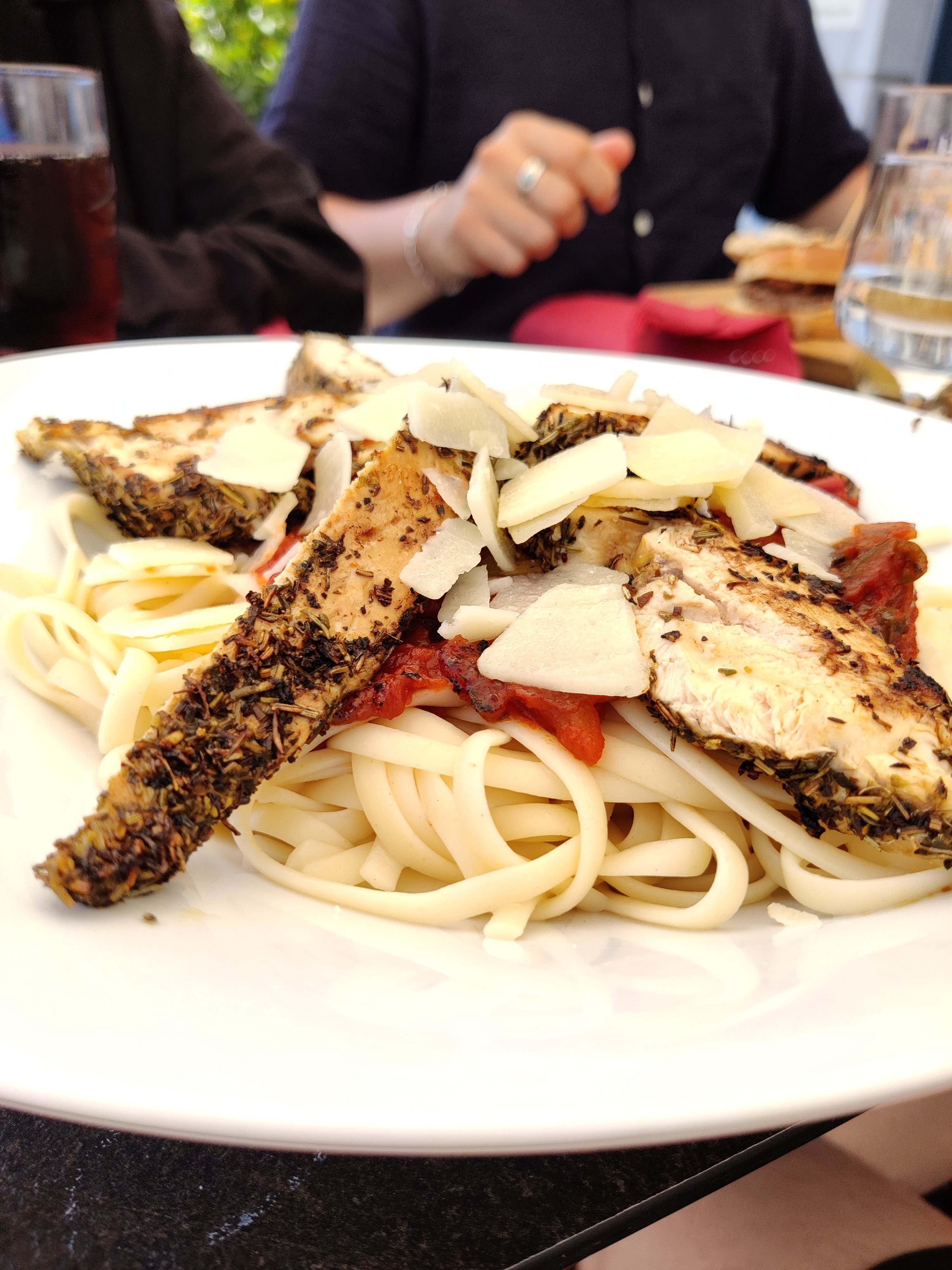 Petit bistro sans prétention, quelle bonne surprise lors de notre arrivée, linguine aux soupions et chorizo, assiette très bien garnie et très bonne pour 16€ repas en extérieur et personnel très agréable. Très bonne surprise n hésitez pas