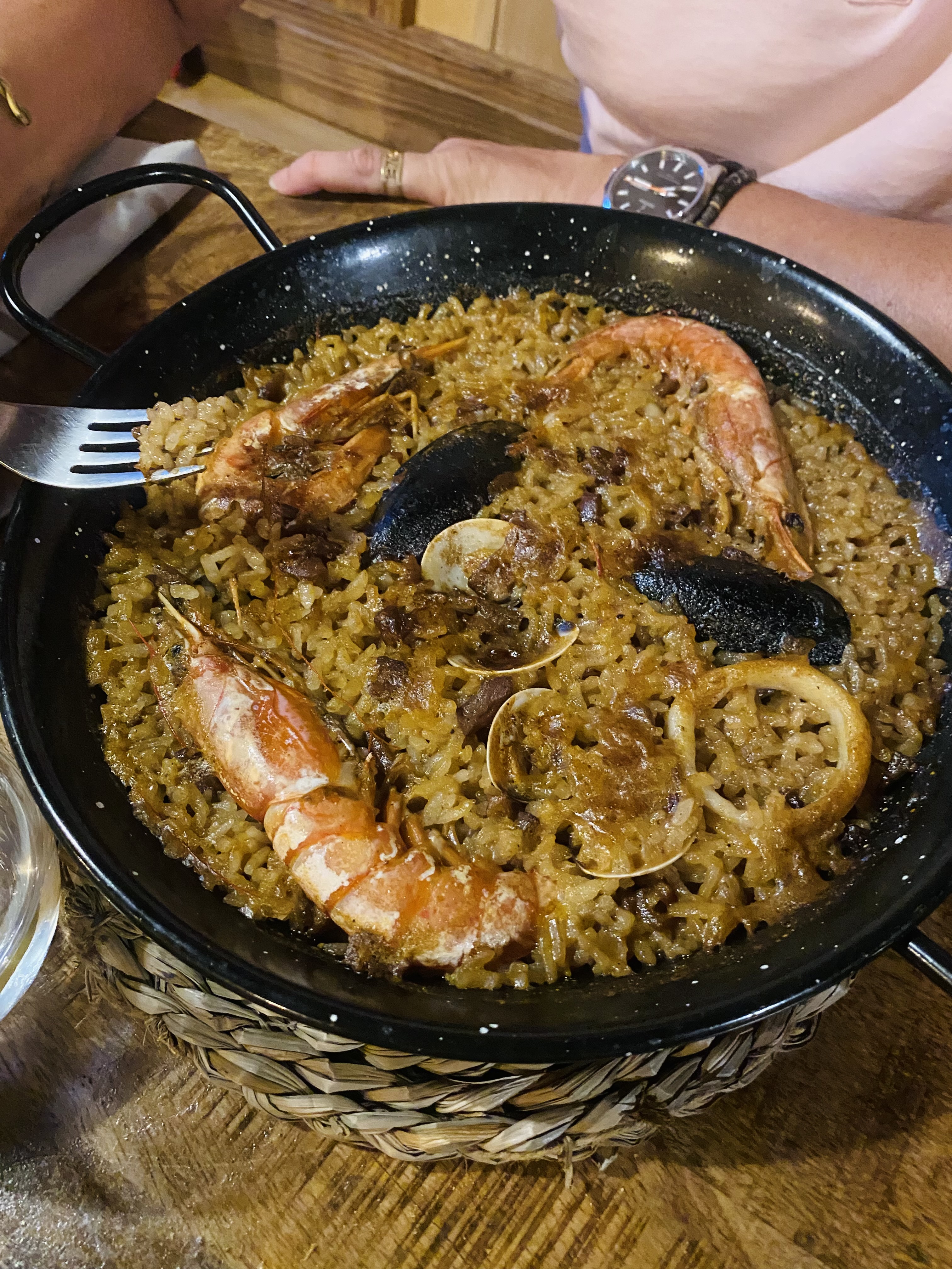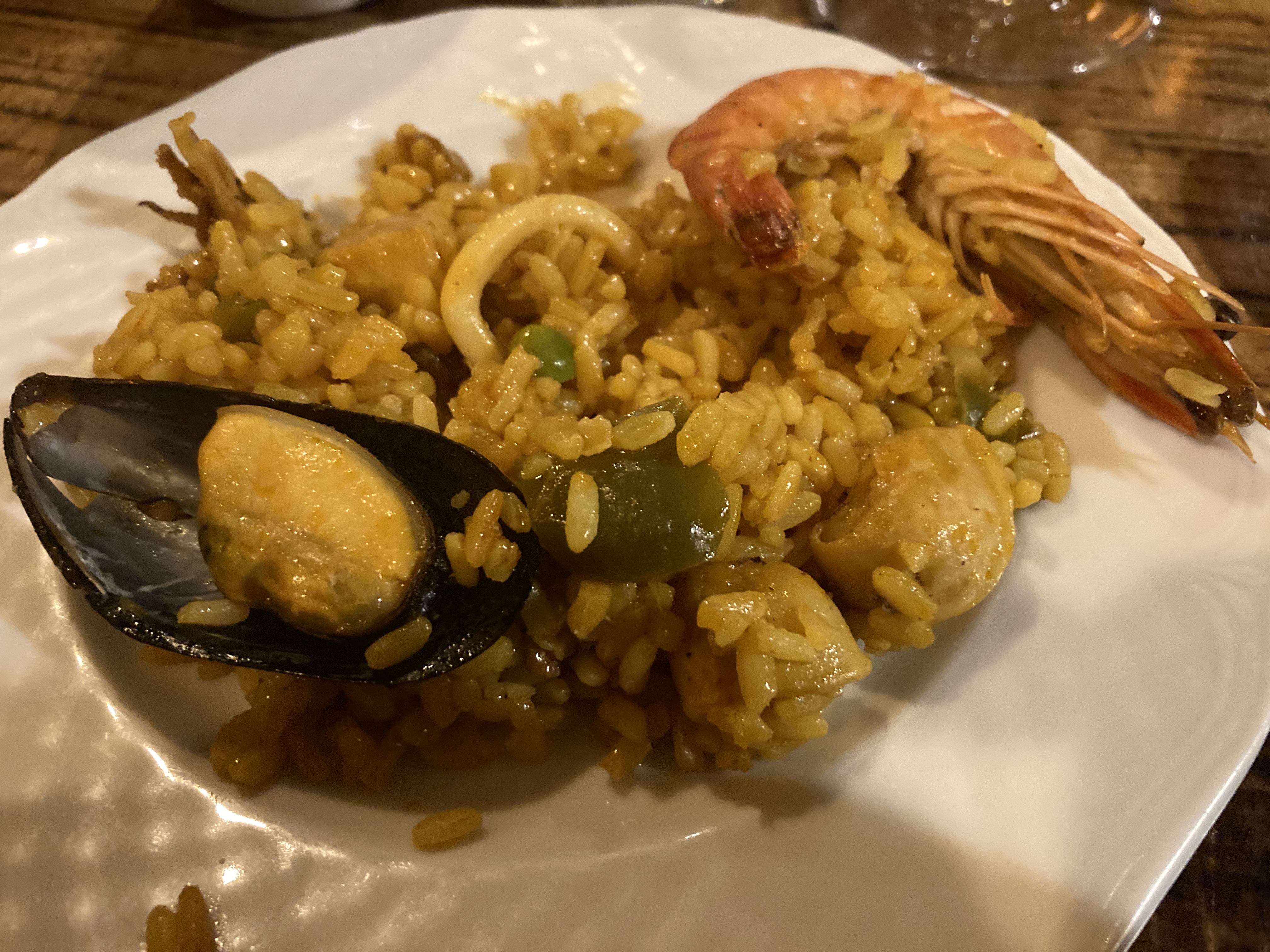 Tout était délicieux ! Des choses simples que l'on connaît comme les tapas avec patatas bravas, gambas à l'ail, jamón, et aussi paella aux fruits de mer mais extrêmement savoureuses ! On sent que tout était fait avec soin. Une mention spéciale à la sauve relevée qui accompagnait les patatas bravas 🤩 Et la torta de Santiago. Moi qui adore les gâteaux aux amandes, j'étais servie. La serveuse était très sympa et nous a volontiers pris en photo avec ma famille pour garder ce précieux souvenir.