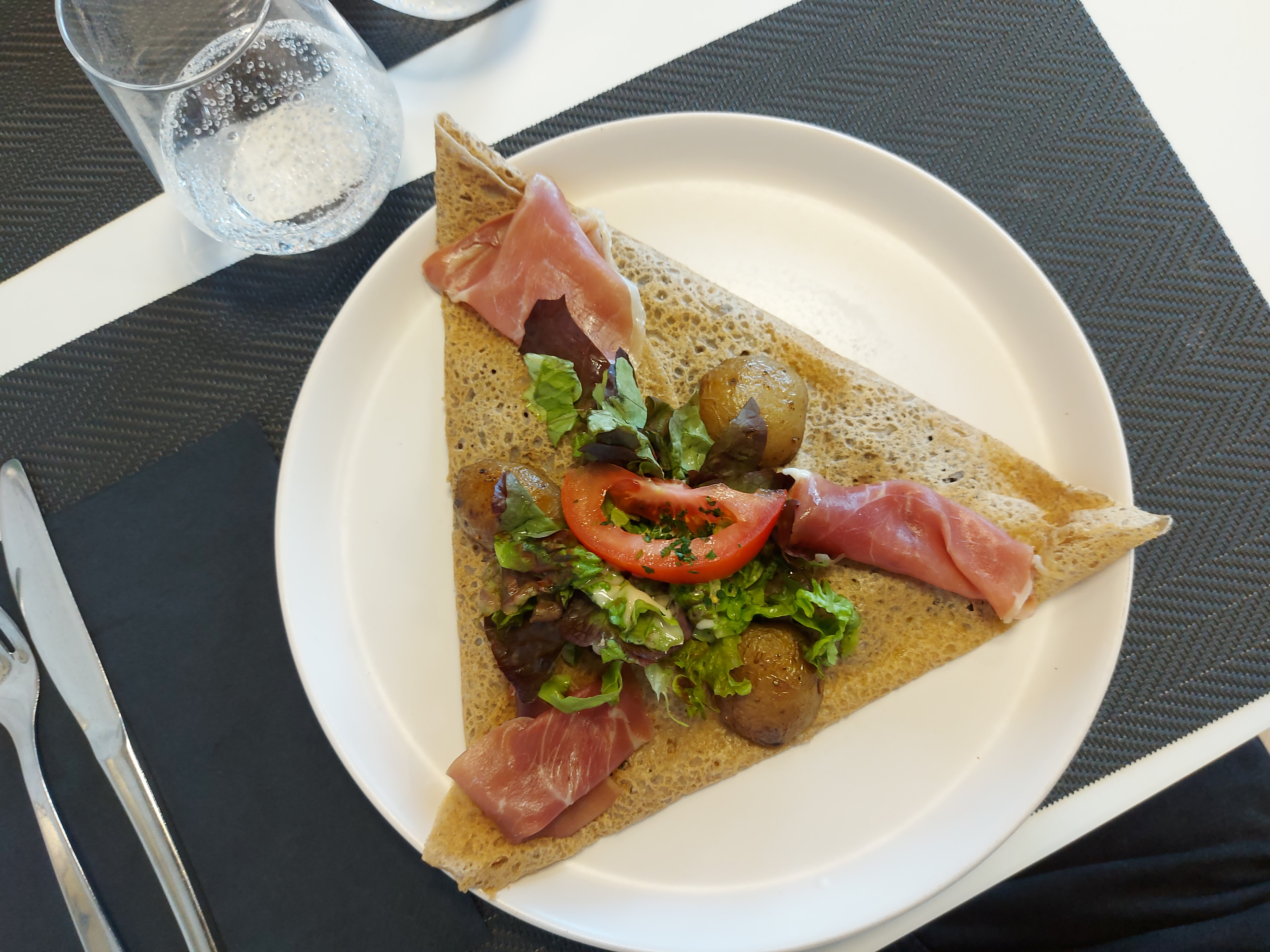 J'ai mangé une très bonne galette au Camenbert et ma femme a mangé une très bonne salade. Bonne continuation à ce restaurant qui vient d'ouvrir.