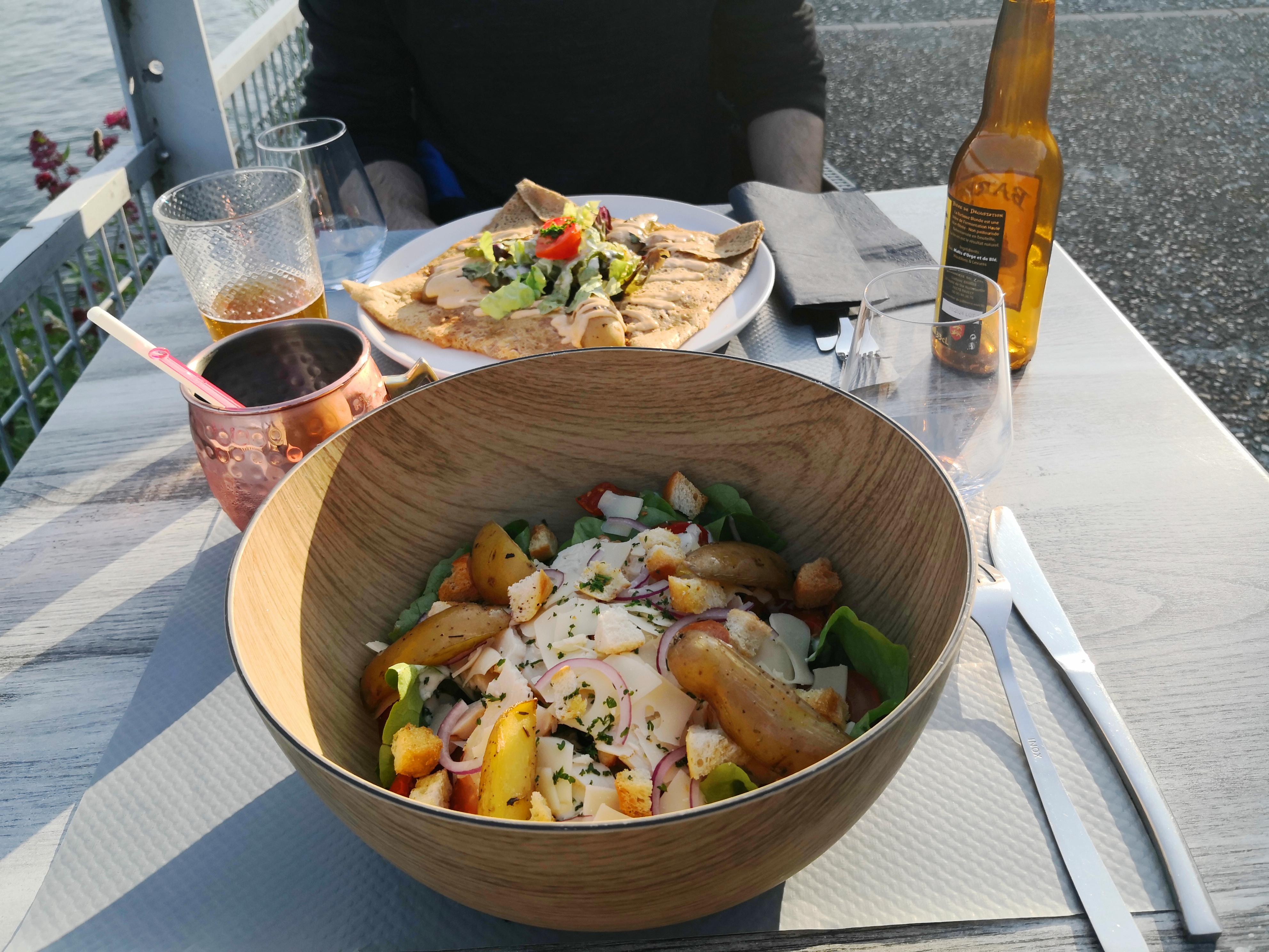 Salade très généreuse et galettes équilibrées, rajoutez à cela une amabilité et une disponibilité dans le service et vous obtenez un moment idéal avec vue sur la Seine. Recommander absolument. avec vue sur