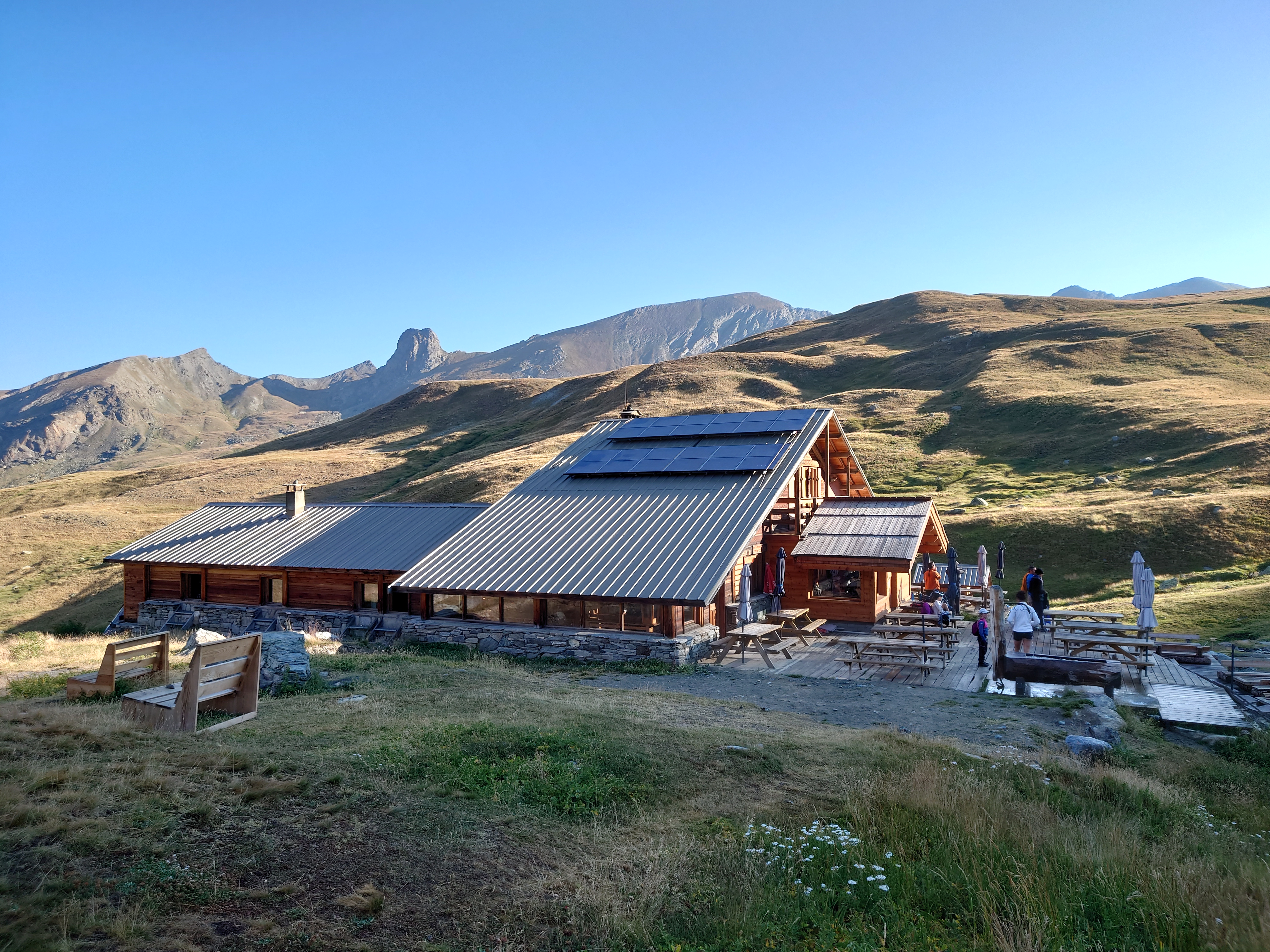 beau refuge, facile d’accès, car une navette monte les touristes depuis St Véran, a 2 km de la....mais bon quand on arrive du col de la Noire...on est bien content de profiter de l'accueil adorable des jeunes serveurs, qui m’ont vendu une énorme part de gâteau au chocolat....absolument délicieux.....de plus la vue sur le vallon est splendide...