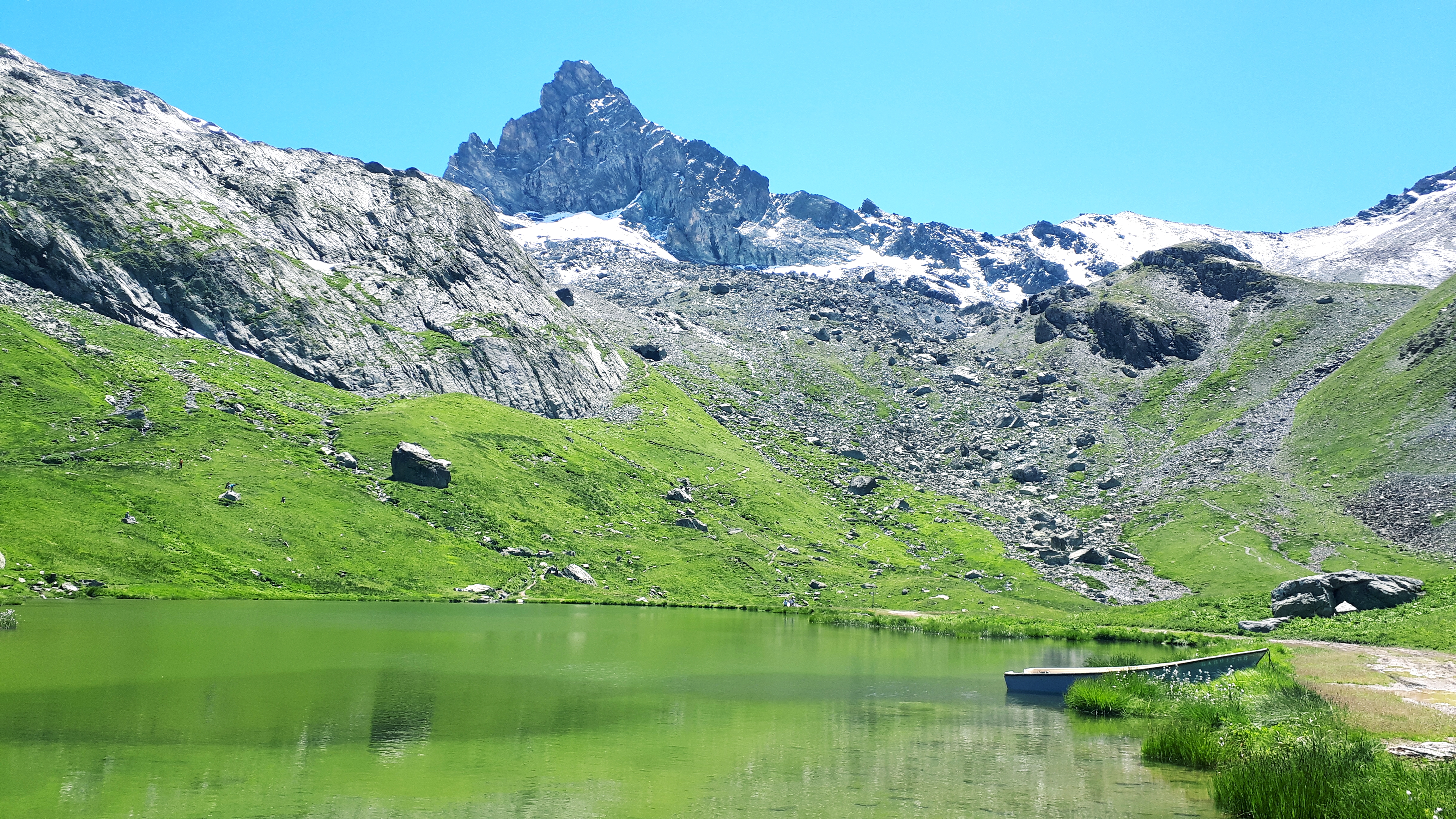 Endroit magique, marmottes, lac et sommet. Tout cela autour d'une boisson.