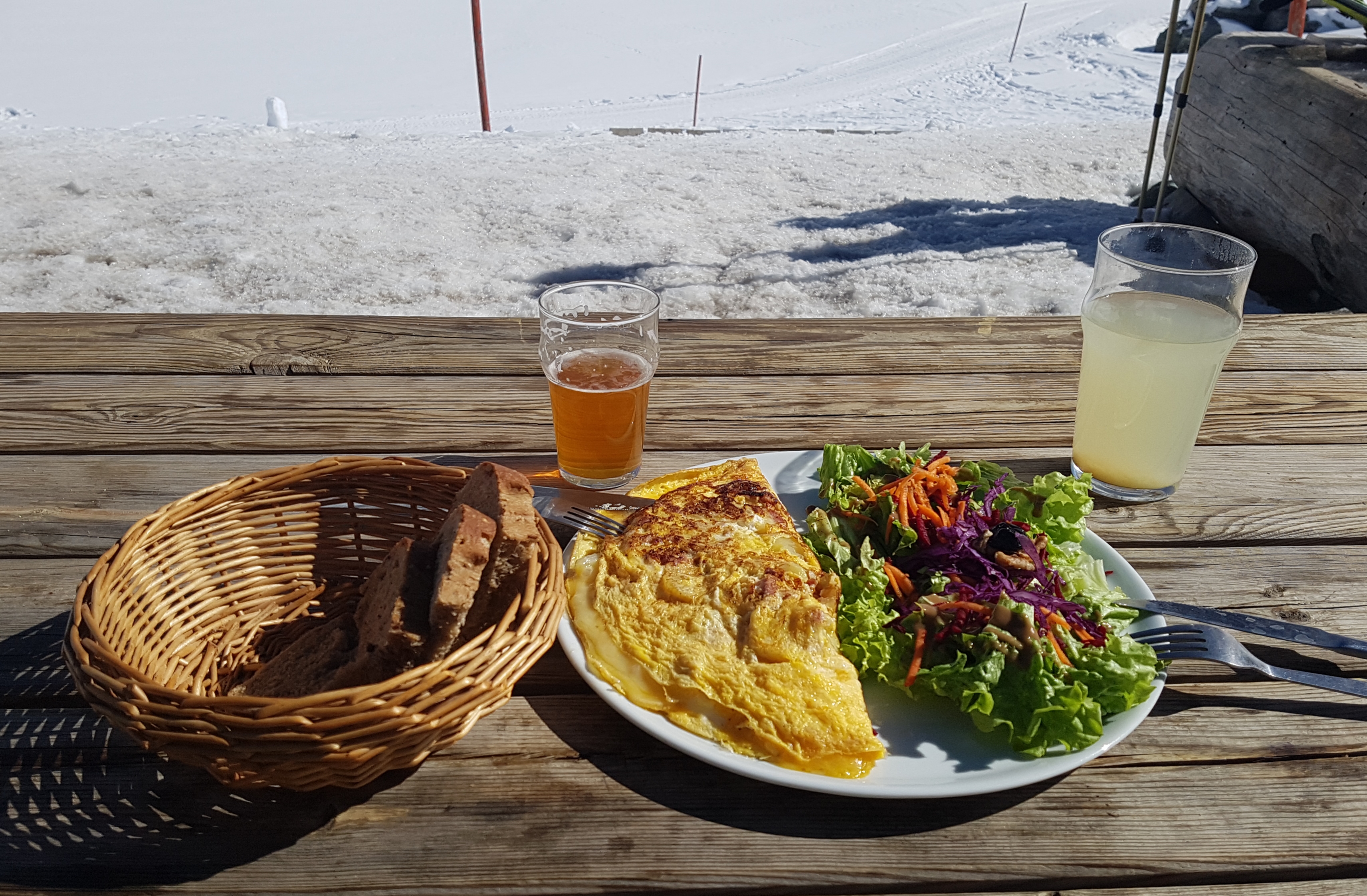 Marche familiale agreable pour acceder au refuge et là : omelette aux pommes de terre /lardons excellente , un régal et sans parler de leur tarte aux myrtille .