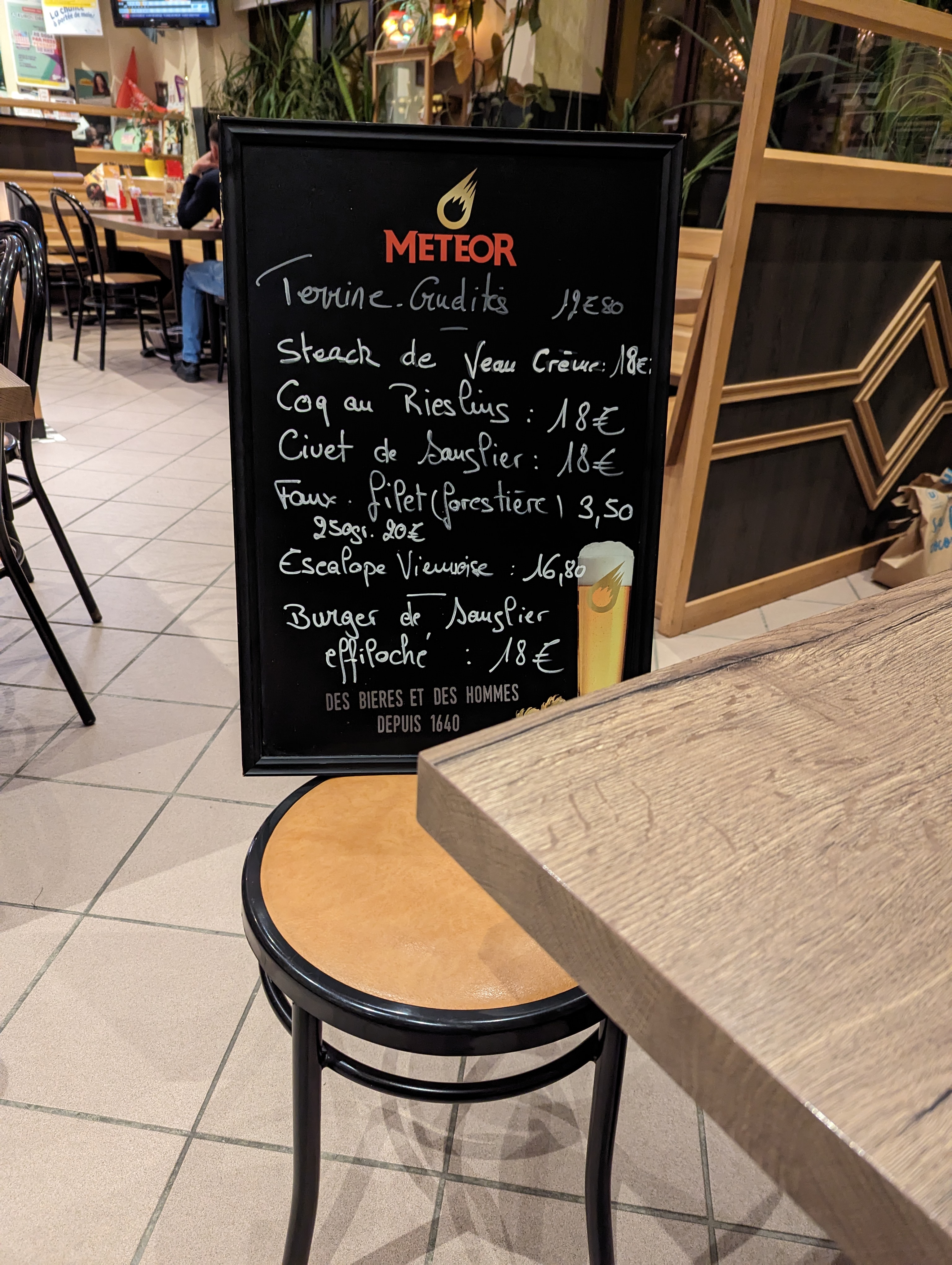 Bonjour je pense que vous avez commis une erreur, vous avez pris une entrecôte de bœuf au "beurre maître d'hôtel maison" avec frites et salade et le buffet de 15 plats au choix à discrétion pour 17,80€ ( ce qui est dans le contexte actuel d'augmentation généralisée des tarifs ,très raisonnable !) ; car le plat du jour aujourd'hui "jambon à l'os avec salade de pommes de terre ou frites" et buffet à volonté était à 12 €. Bonne journée et bonne année à vous !