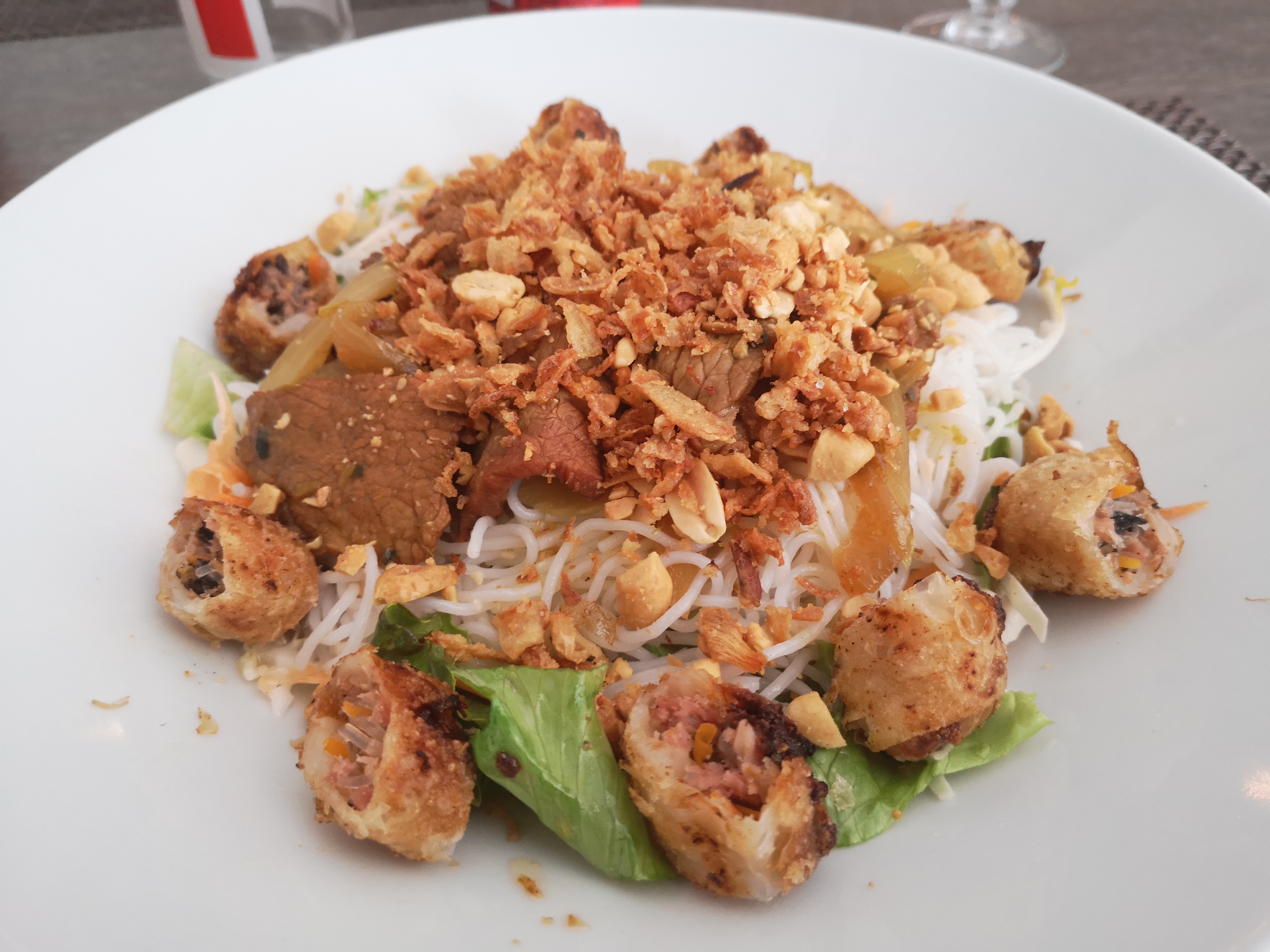 Cuisine délicieuse, vraiment fait maison, les samosas une tuerie la farce est vraiment extra, salade Bo bun très parfumé, ravie
