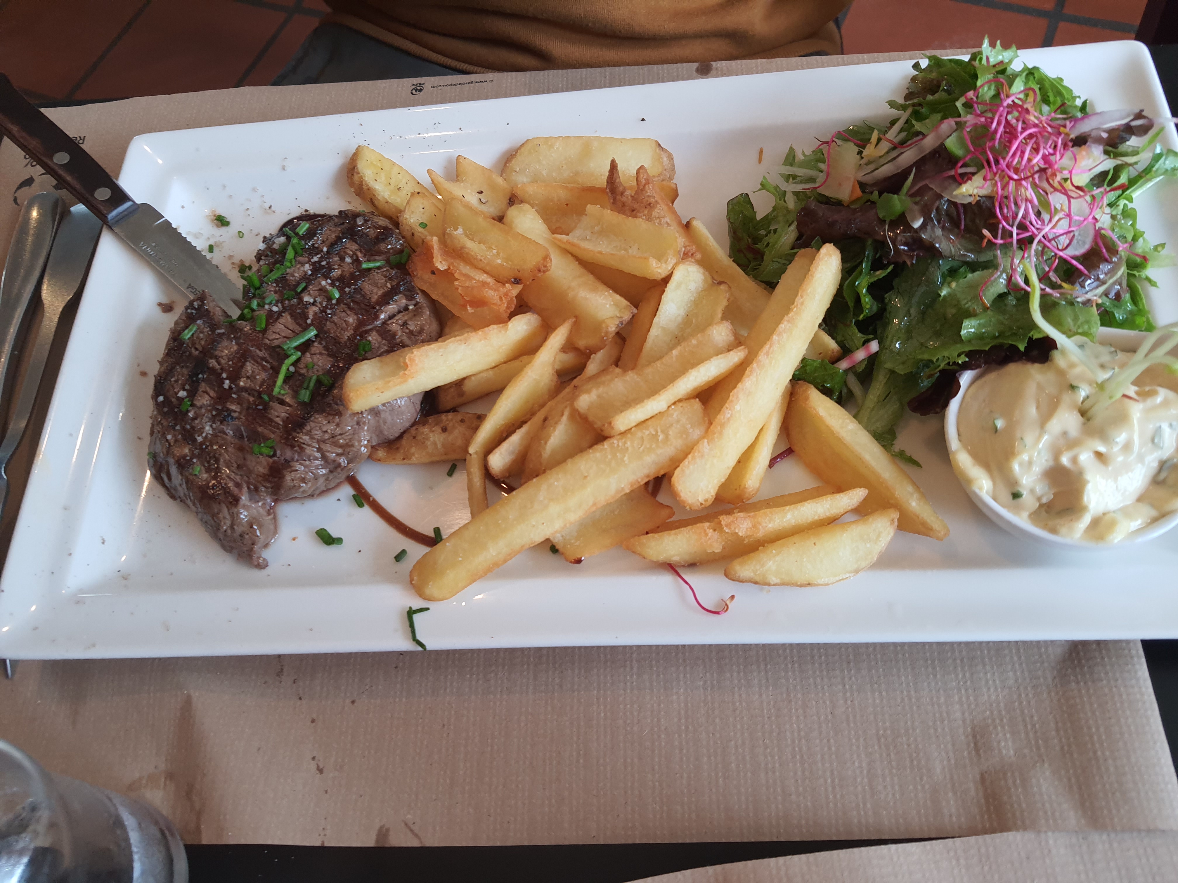 Posté le 06/08/2024 à 10:26"Frites pas assez cuite, trop de féculent et pas assez de légumes dans le plat végétarien, dommage et très épicé."