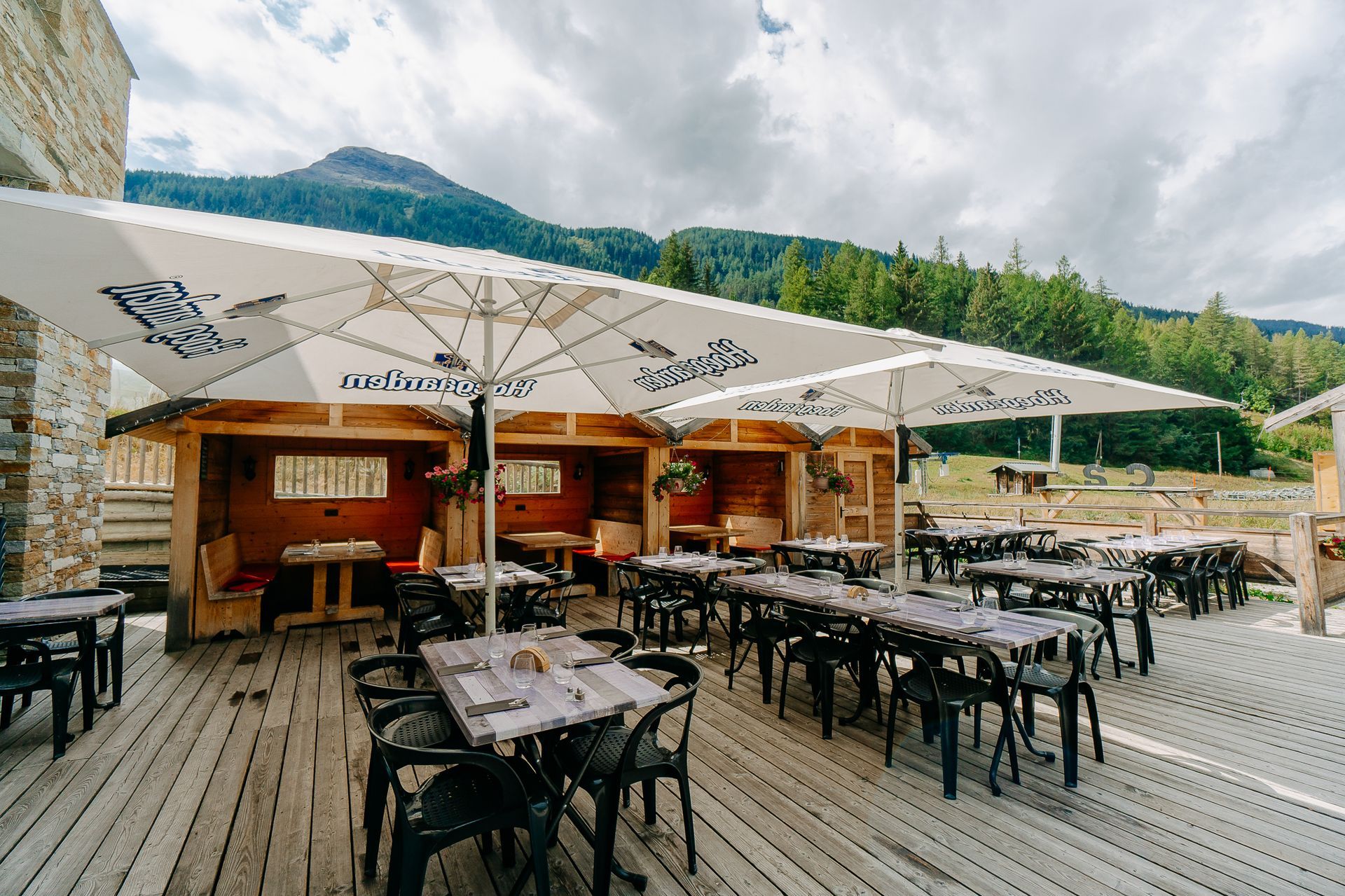 Le cadre est sympa avec ses mini chalets avec vue sur la montagne et le service est sympa. En revanche niveau repas c'est très moyen : c'est pas très fin et en grosse quantité. Et en fait c'est assez cher... La musique assez forte aussi n'est pas très agréable pour manger tranquillement.