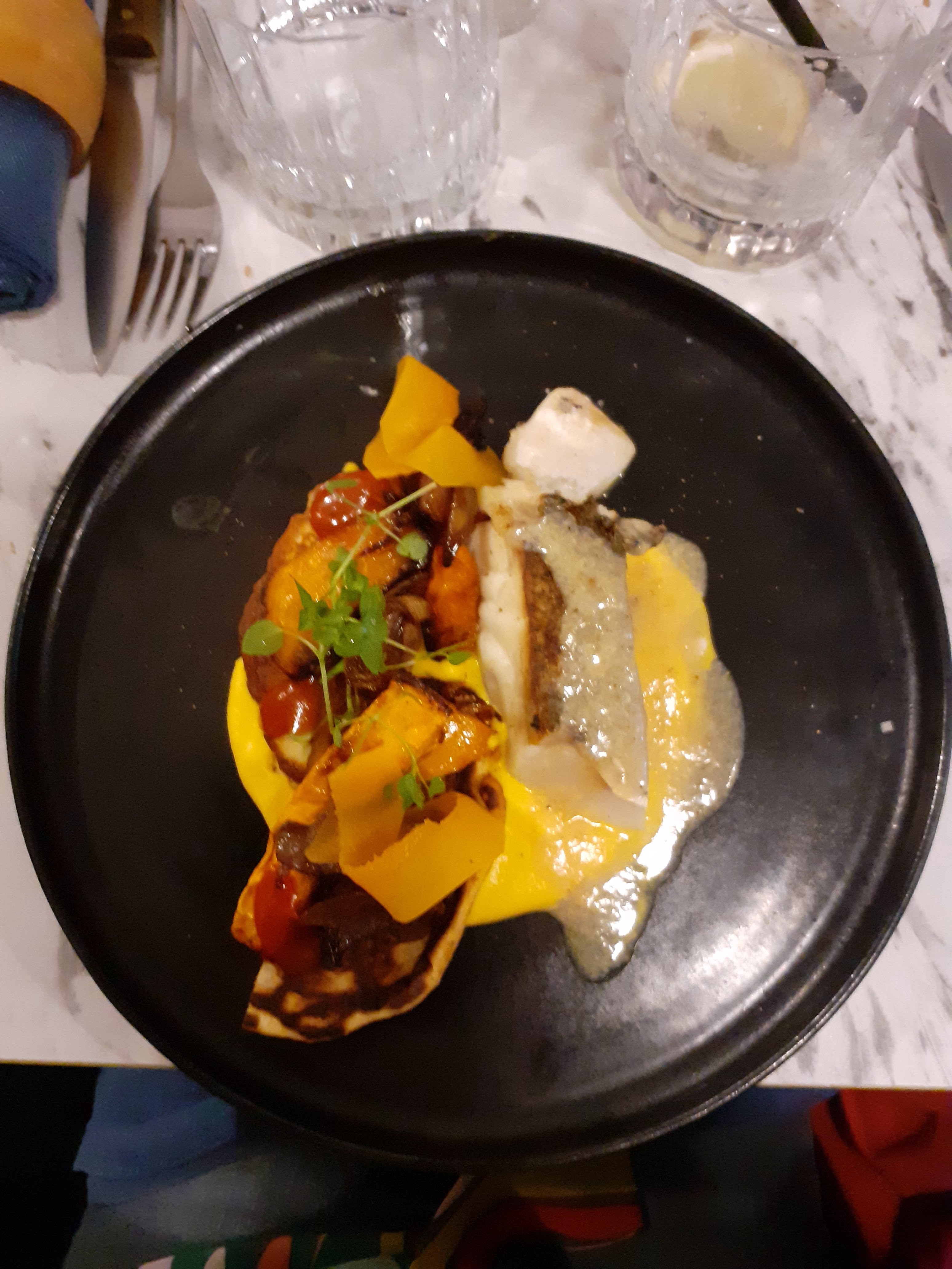 Agréable découverte ! Cuisine originale et excellente ! Personnel sympa et très professionnel ! A bientôt... c'est sûr 😊 !