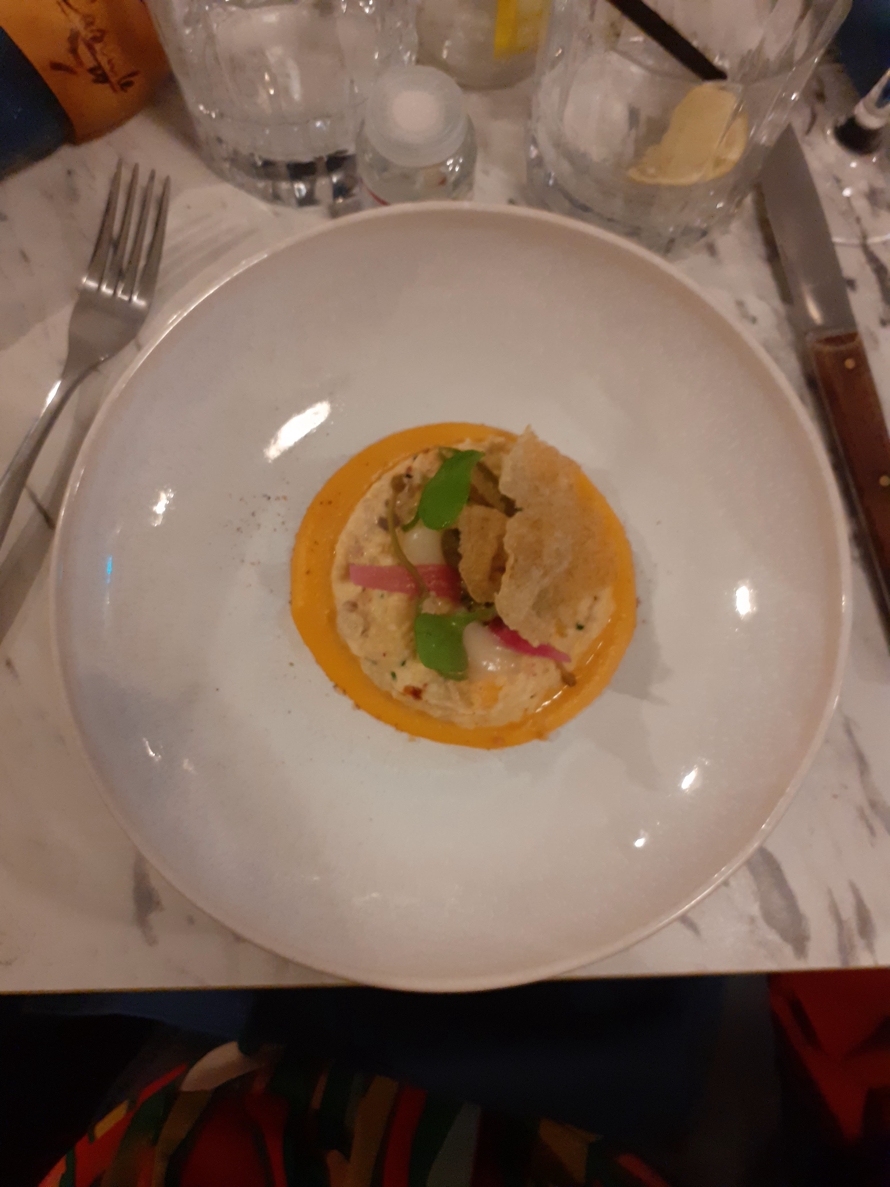 Cadre sympathique, personnel sympathique, le concept des menus surprises étonnant du fait de ne pas savoir ce que l'on va manger, très bons produits frais, qualité, dressage, goûts, couleurs, franchement j'ai adoré ! Merci encore ! Nico