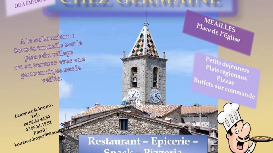 Voici toutes les informations sur le Restaurant RESTAURANT CHEZ GERMAINE ÉPICERIE qui ce trouve au Place de l'Église, 04240 Méailles (04). Sur cette fiche vous trouverez les photos, l'adresse, les horaires d'ouverture, le numero de téléphone et les avis clients.Vous pouvez églement rédiger un avis si vous le souhaitez en bas de page.