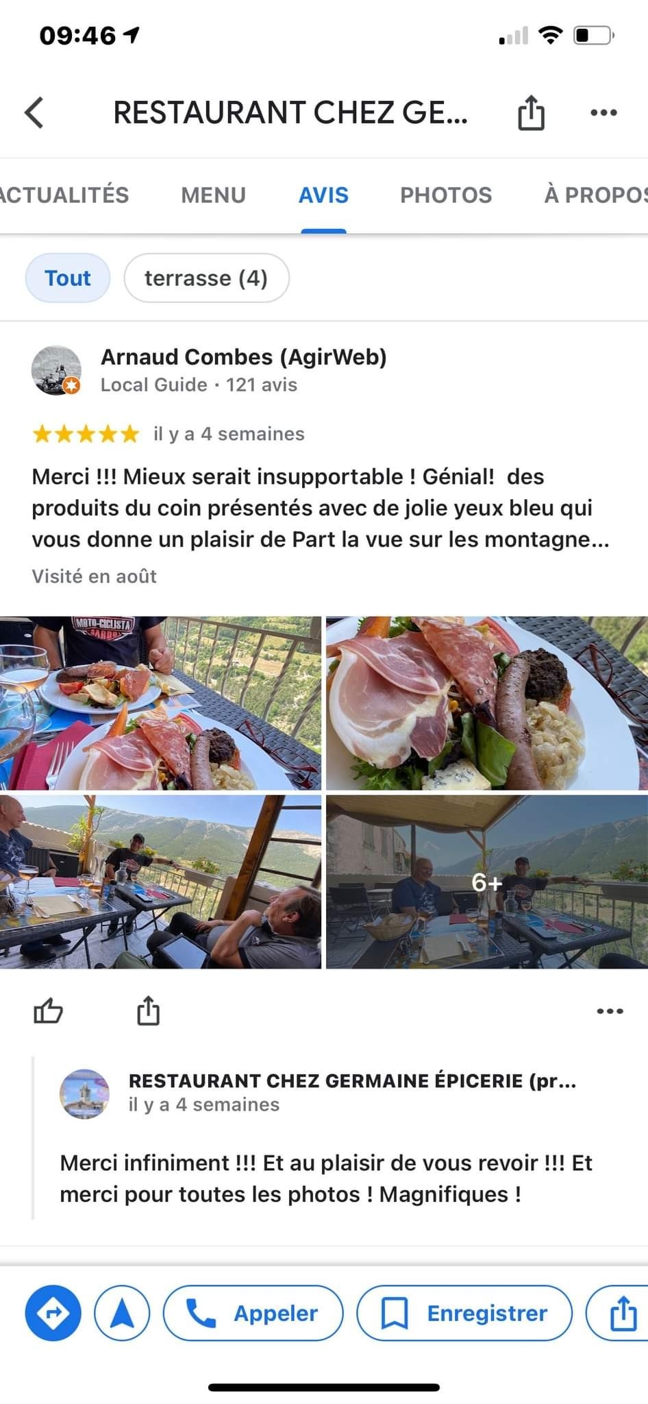 Nous étions un groupe de 10 randonneurs et avons été très bien accueiilis par la petite fille de Germaine. Épicerie de famille avec terrasse et vue sur les gorges où il est agréable de s arrêter pour prendre un verre, un café ou autre. Merci beaucoup pour ce moment agréable
